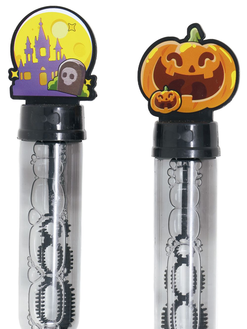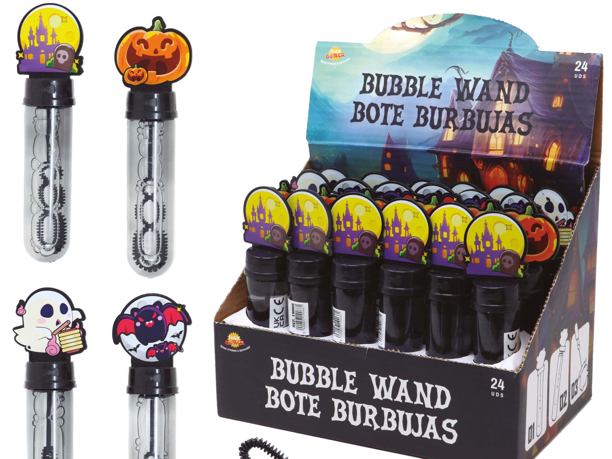 Tubo de pompas para que los niños jueguen en el día de Halloween, un pompero para que los niños se diviertan con las burbujas.