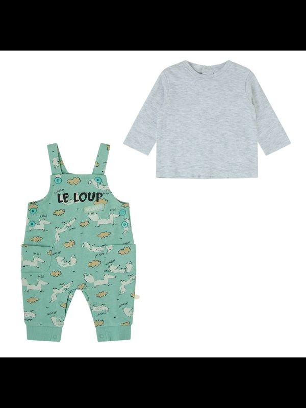 Este adorable conjunto de bebé incluye un peto estampado que es perfecto para cualquier ocasión. Confeccionado con los mejores materiales de moda y textil para bebé, este conjunto garantiza comodidad y estilo para tu pequeño. ¡Hazte con este conjunto y dale a tu bebé un look único y encantador!
