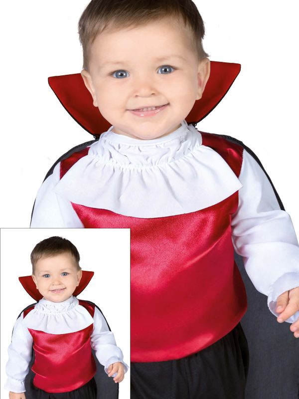 Un disfraz original y cómodo para disfrazar a los niños más pequeños para Halloween, el disfraz de vampiro no puede faltar en la fiestas para Halloween.