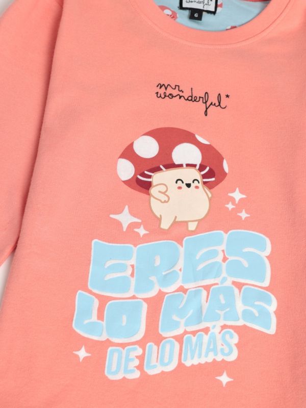 ¡Consiente a tu pequeña con este adorable pijama de la marca Mr. Wonderful! Con el mensaje "Eres lo más de lo más" impreso en la parte delantera, este pijama de moda es perfecto para que tu niña se sienta especial y cómoda. Fabricado con materiales de alta calidad, esta pijama es ideal para las noches de descanso. ¡Haz que tu pequeña se sienta única con este pijama tan especial!