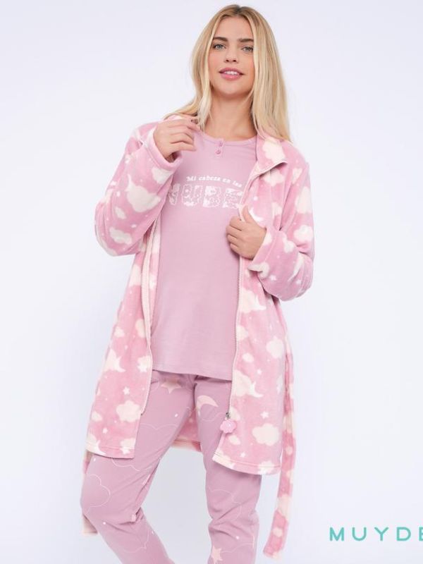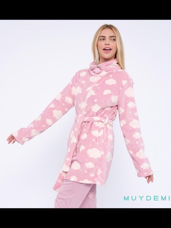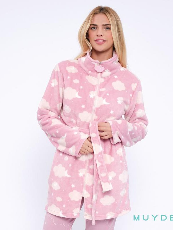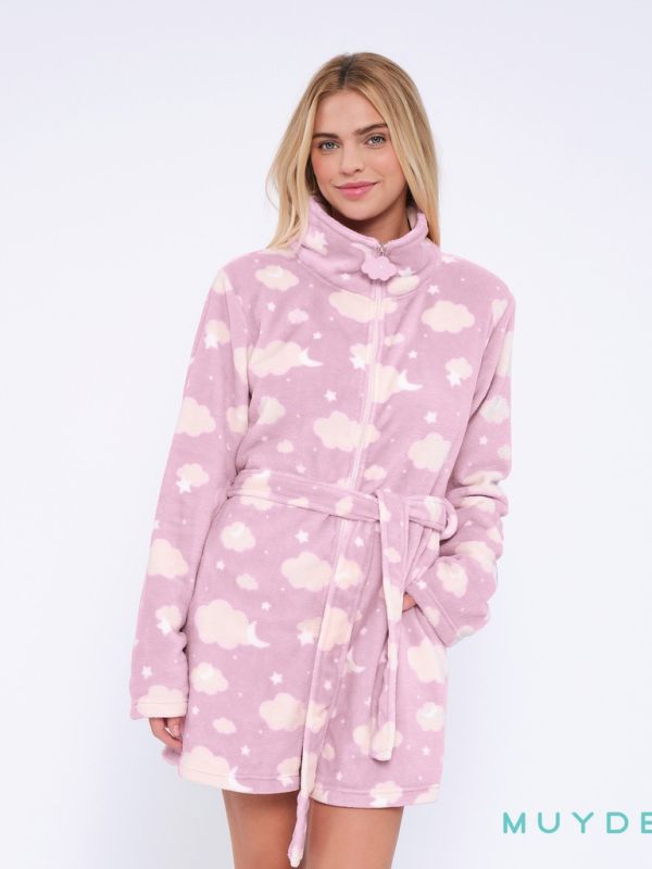 Descubre nuestra bata corta para mujer con estampado de nubes, ideal para estar a la moda y cómoda en casa. Con cremallera para mayor comodidad. ¡Hazte con la tuya y disfruta de la moda en casa!