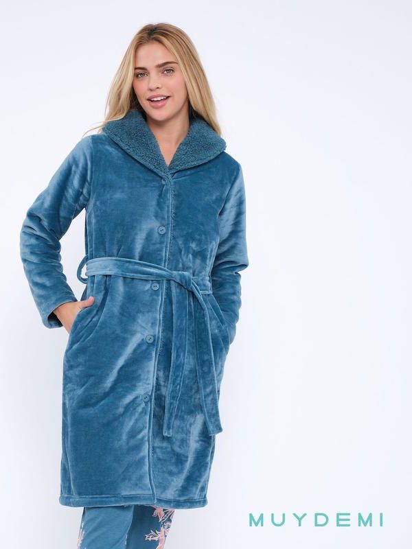 Descubre nuestra elegante bata de mujer en microvelour, perfecta para mantenerte abrigada y cómoda en casa. Con su suave pelo por dentro, te sentirás envuelta en lujo. Esta bata abotonada y con cinturón es la combinación perfecta de moda y confort. ¡Hazte con la tuya hoy mismo!
