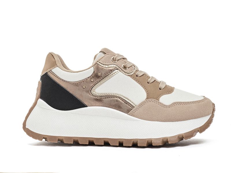 Deportivo con diseño de piezas en diferentes colores. Con plantilla confort extraíble y cuña.