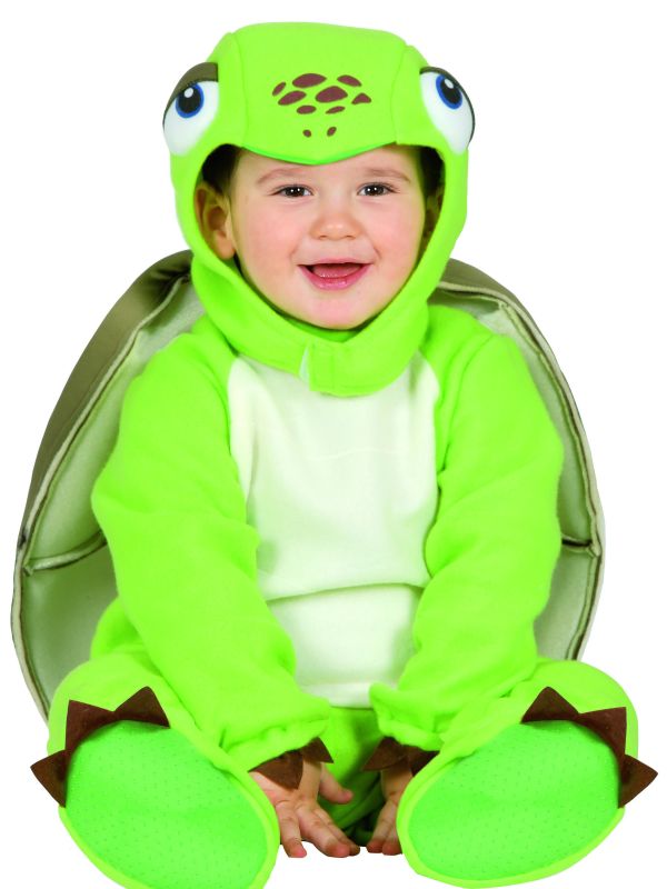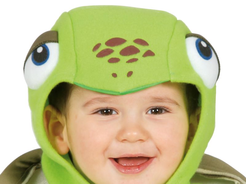 El disfraz de Tortuga para bebé contiene mono, pies, caparazón y capucha.