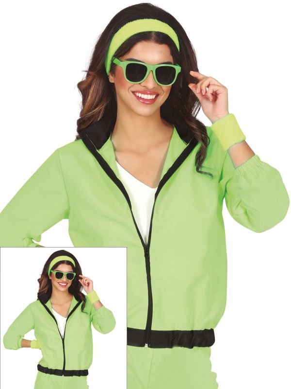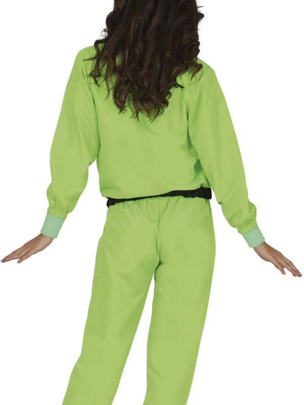 Disfrazate con este original chándal de mujer en color verde flúor, un chandal original y llamativo para tus fiestas de disfraces de los 80 y 90.