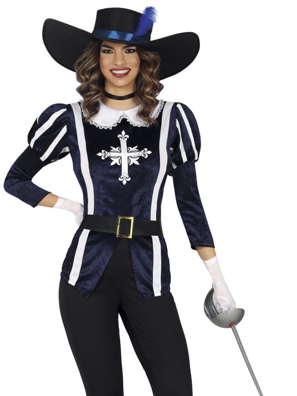 Disfrazate con este original disfraz de mosquetera para mujer, un disfraz original y elegante para tus fiestas de disfraces. Ideal para disfrazarte en carnaval, disfrazarte en grupo o en pareja.