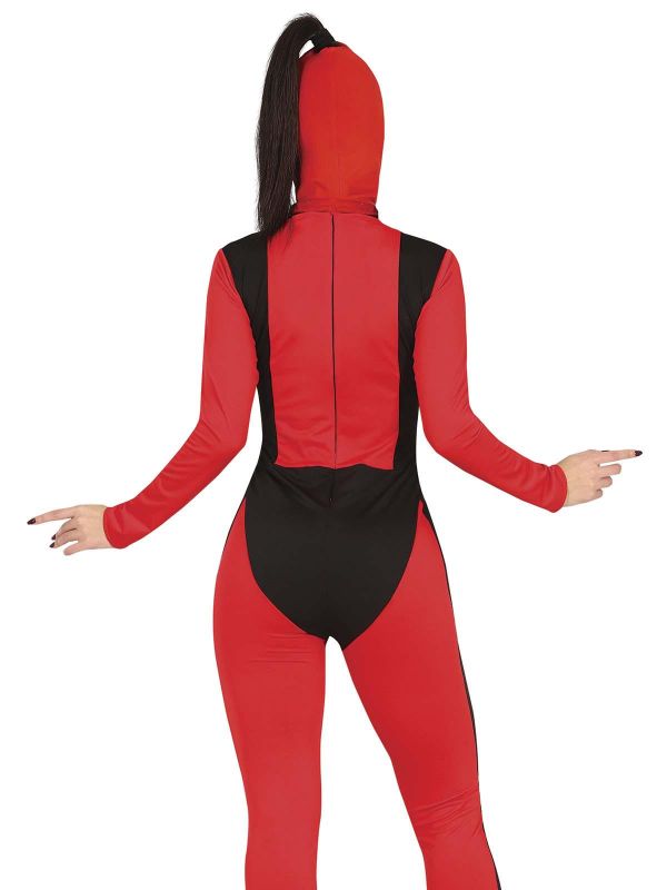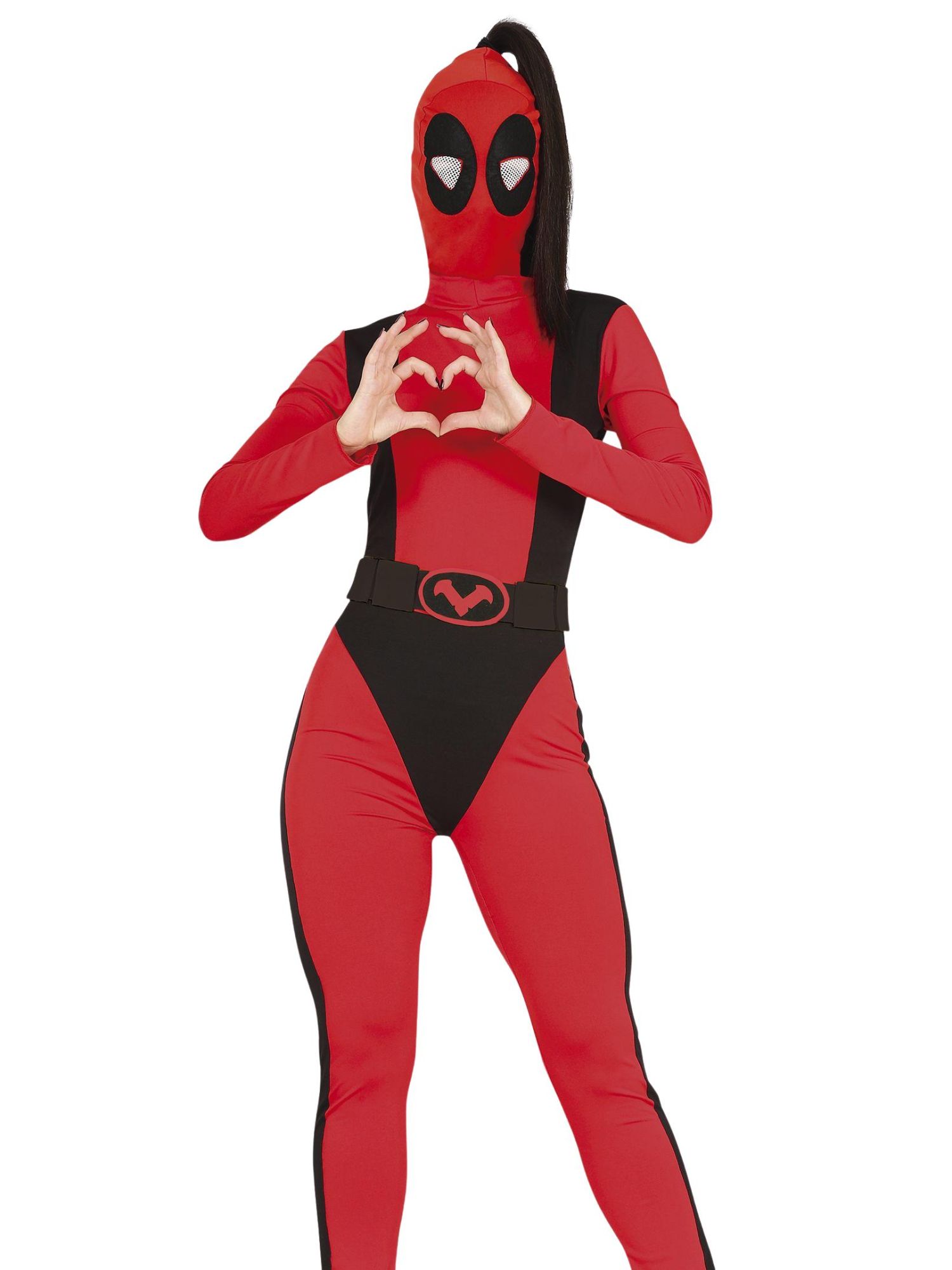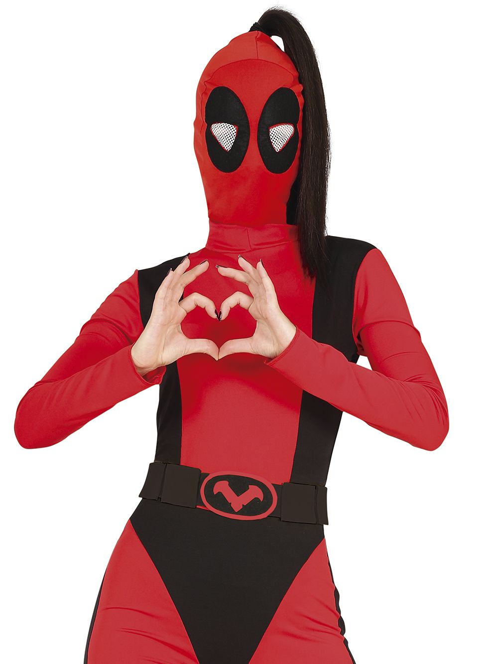 El disfraz de antihéroe para mujer contiene cinturón, mono y capucha.