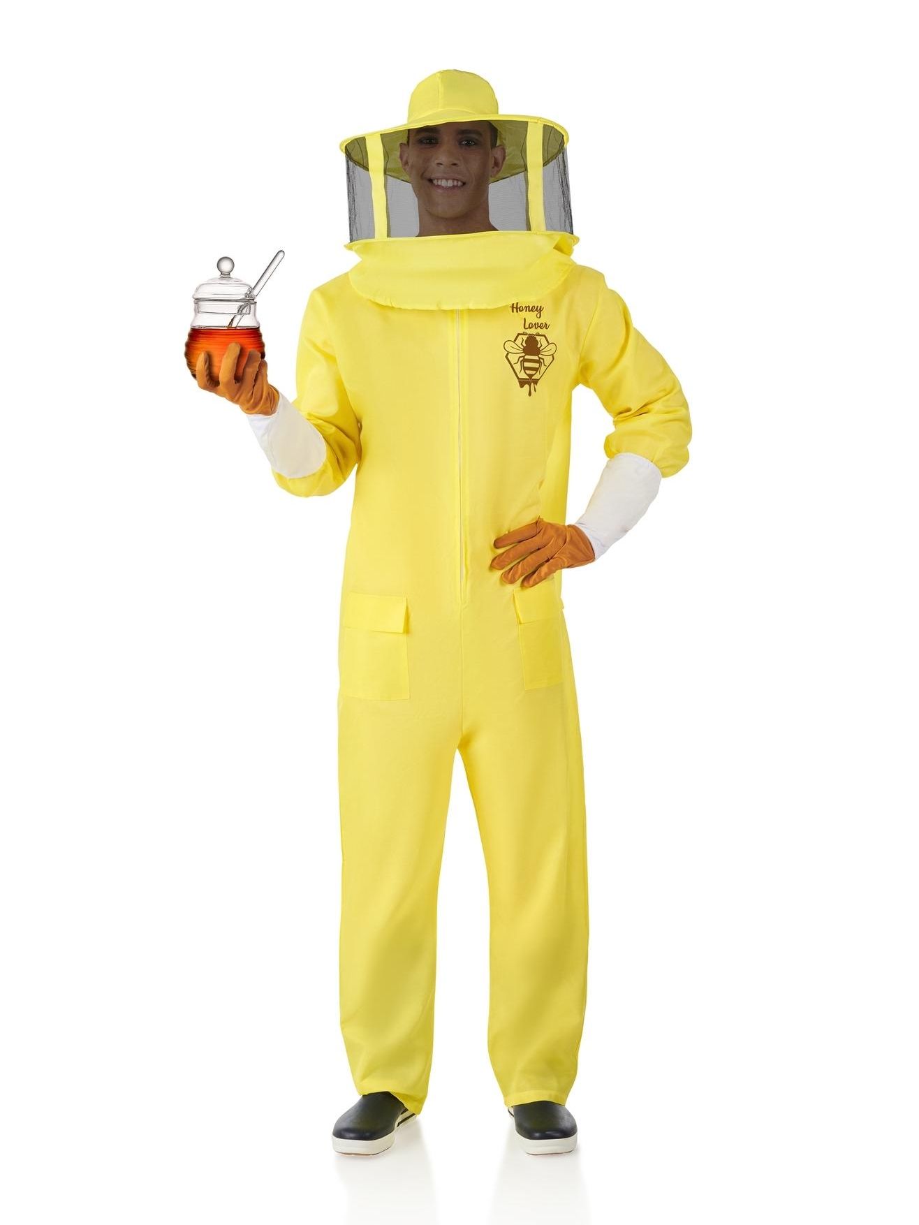 El disfraz de apicultor contiene mono, gorro con velo y guantes.