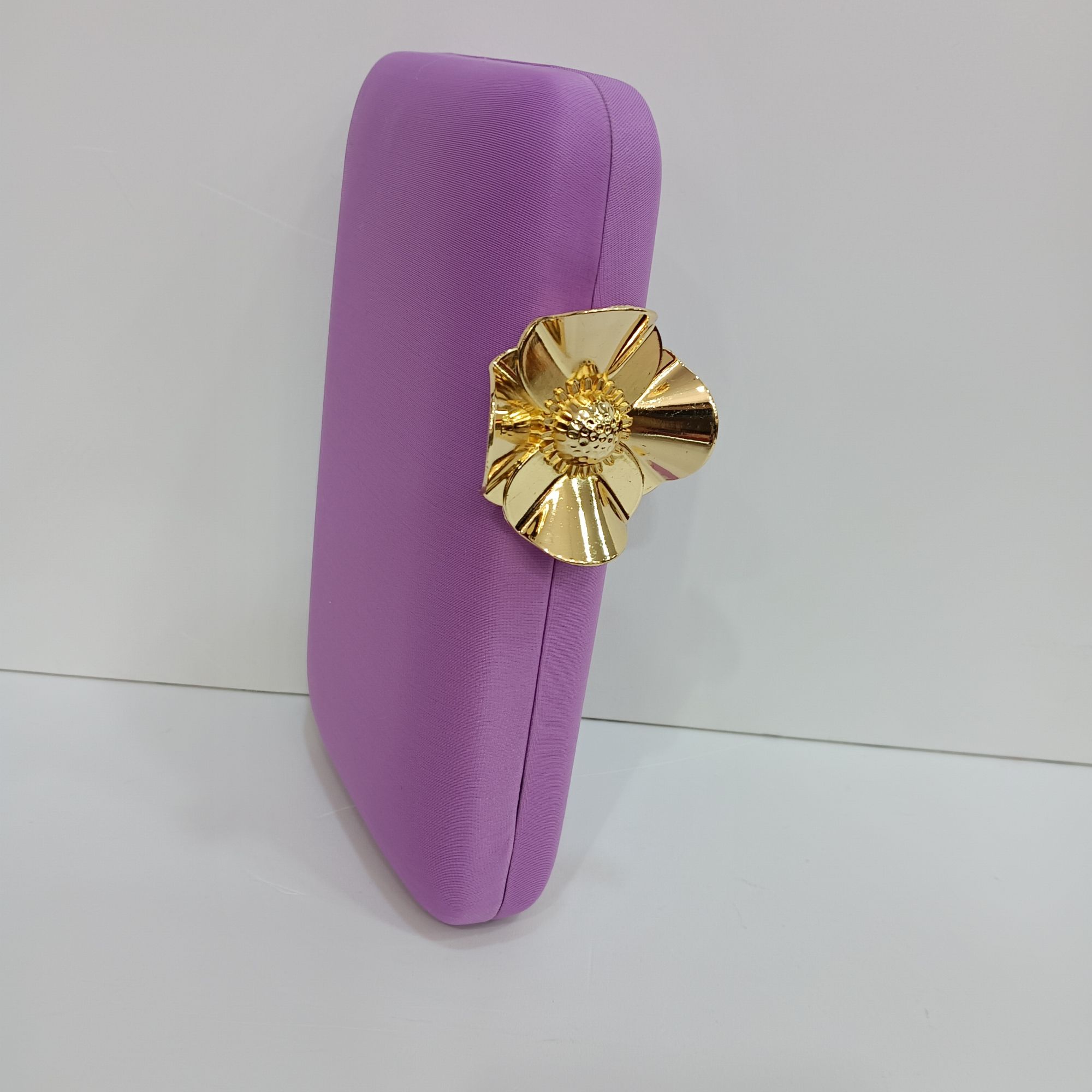 Bolso de antelina con adorno en forma de flor en el cierre . Cadena larga dorada en el interior.