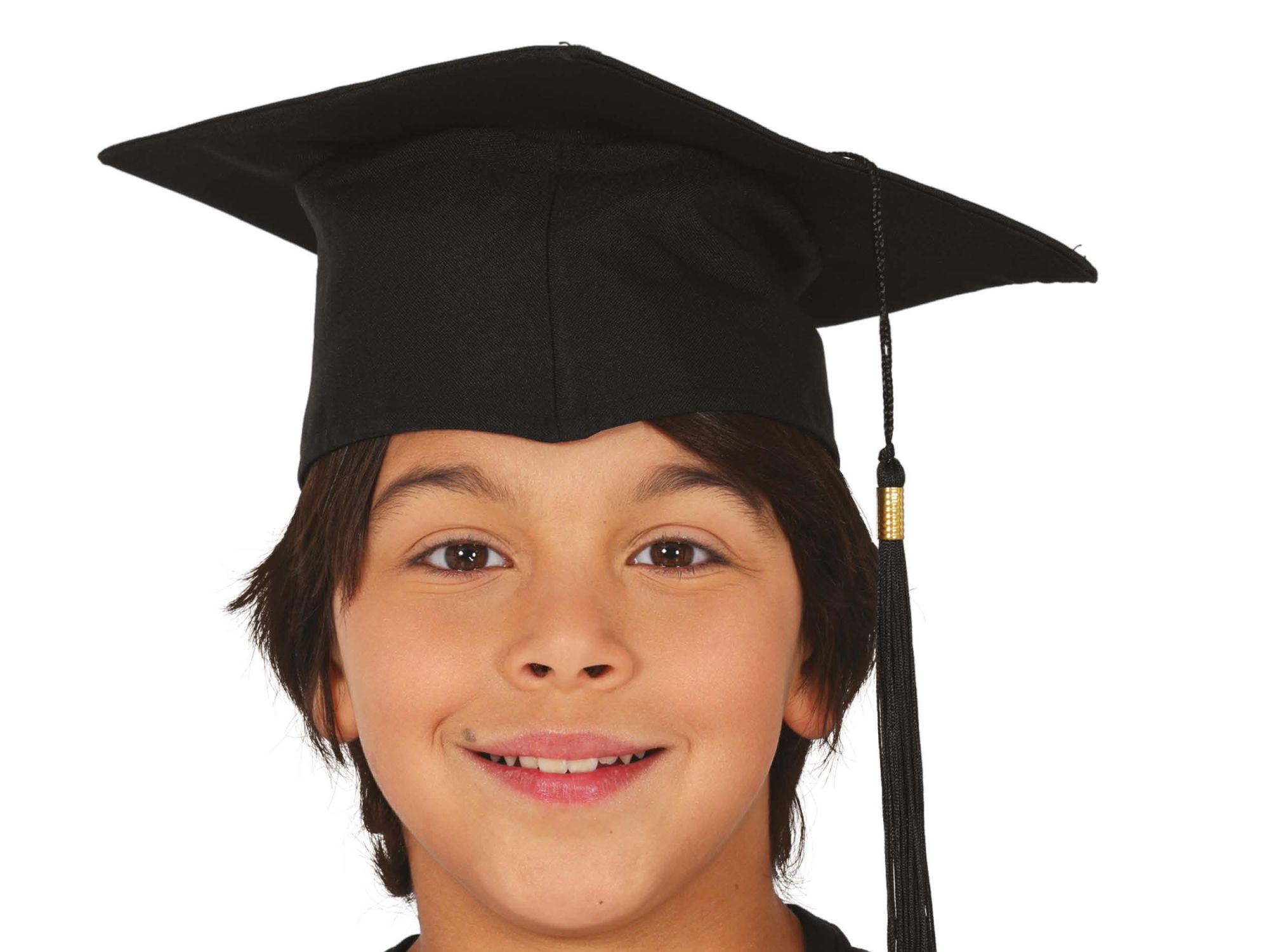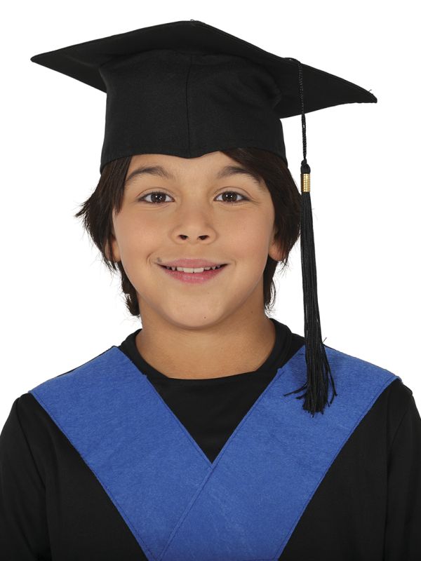Birrete de tela para las graduaciones de final de curso. Disponible en dos tamaños, infantil y adulto. Birrete en color negro con borla para que en la graduación no les falte detalle de su gran día.