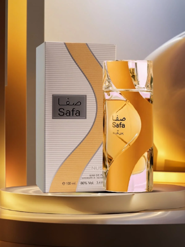 Descubre Safa by Nusuk, una fragancia femenina que combina frutas jugosas, flores suves y dulces envolventes para crear una experiencia olfativa irresistible. Perfecta para cualquier ocasión.