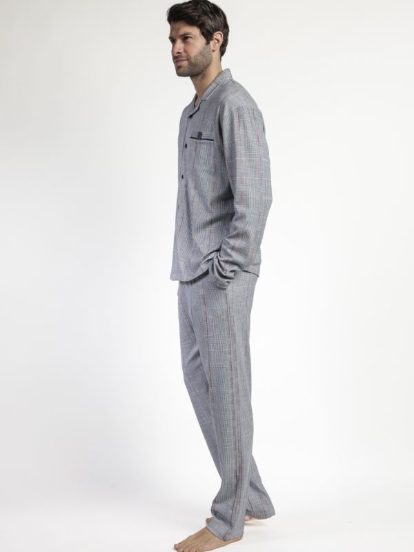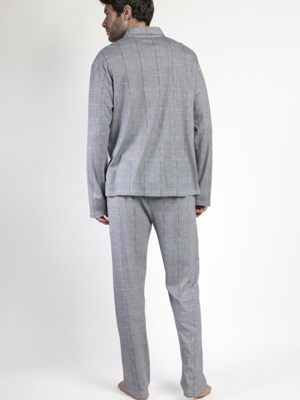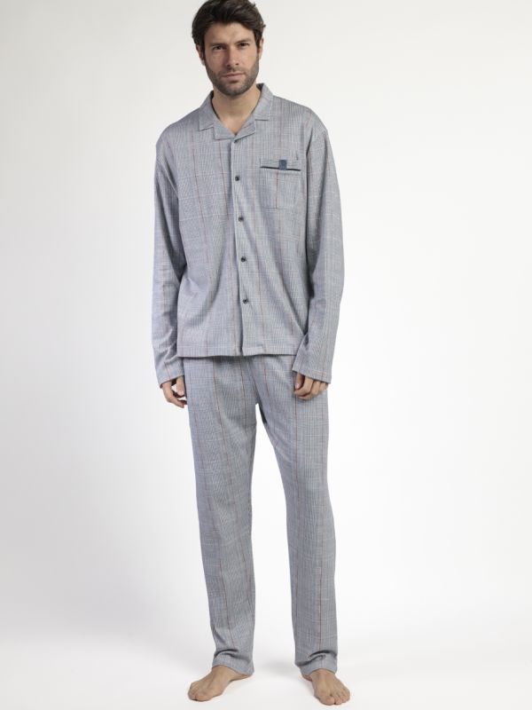 Descubre la comodidad y estilo con el pijama Harris B de Admas Classic. Confeccionado en punto de algodón, este pijama de manga larga cuenta con un cuello de solapa y pantalón largo para una mayor cobertura y calidez. La camiseta en color gris presenta un bolsillo en el pecho y un diseño personalizado, mientras que el pantalón tiene una cinturilla elástica con cordón para un ajuste perfecto. Disfruta de un tejido suave y agradable al tacto que te brindará una sensación de confort en todo momento. ¡Hazte con la moda y la calidad en una sola prenda!