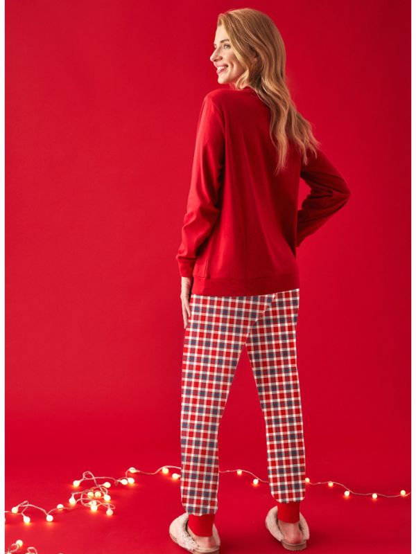 ¡Celebra la Navidad con estilo y comodidad con nuestro pijama navideño para mujer! Este conjunto está compuesto por una sudadera roja con motivos navideños y un pantalón de cuadros, perfecto para disfrutar de las fiestas en casa. ¡No te pierdas esta moda navideña y conviértete en el centro de atención en estas fechas especiales!