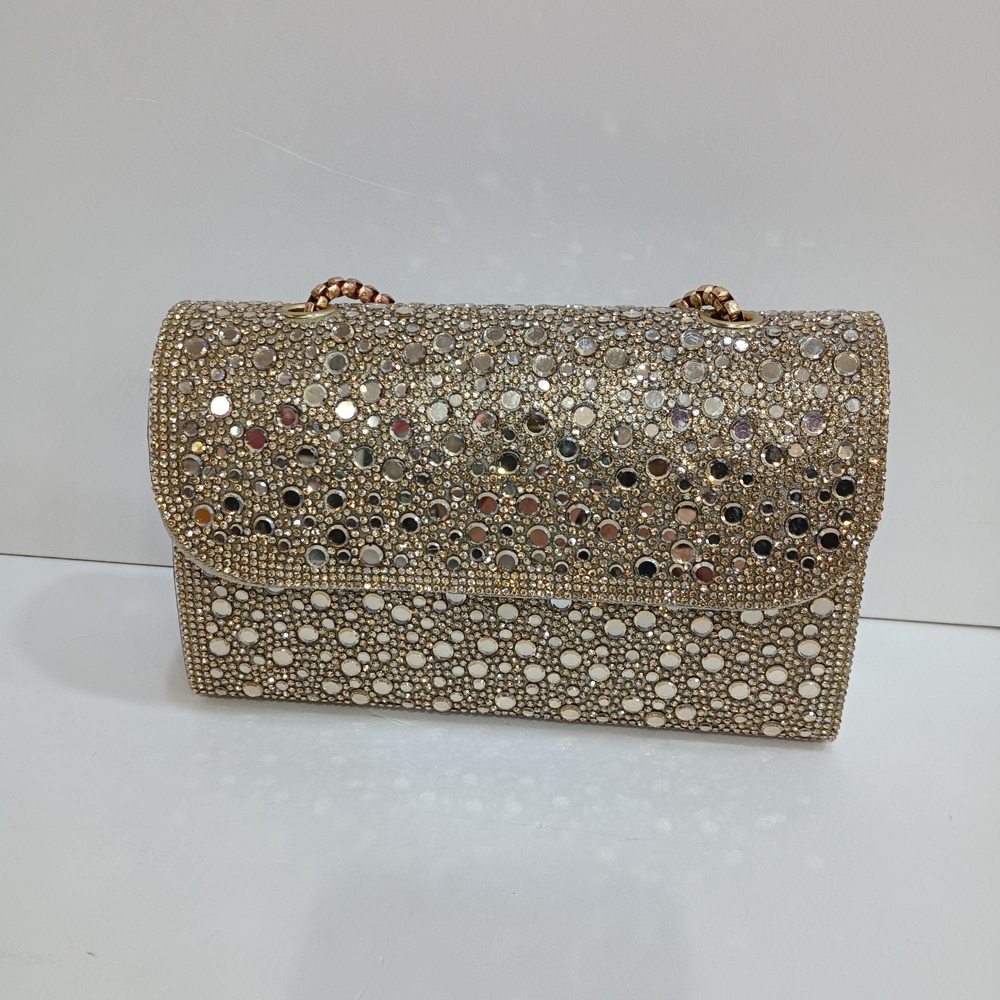 Bolso dorado de mano con cadena para colgar al hombro. Bolso casual, retro y elegante, bolso bandolera de fiesta .