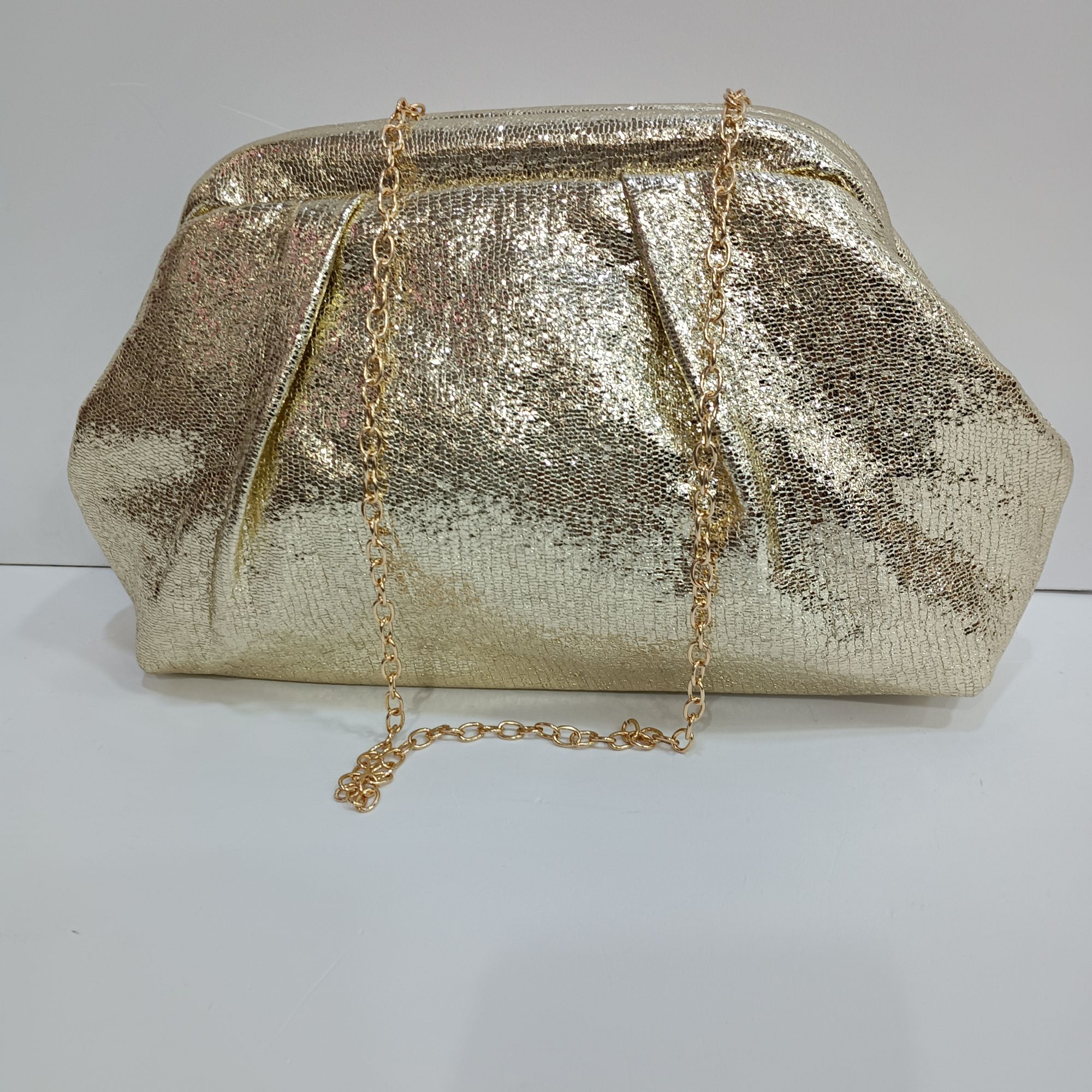 Bolso dorado de mano con cadena para colgar al hombro. Bolso casual, retro y elegante, bolso bandolera de fiesta .
