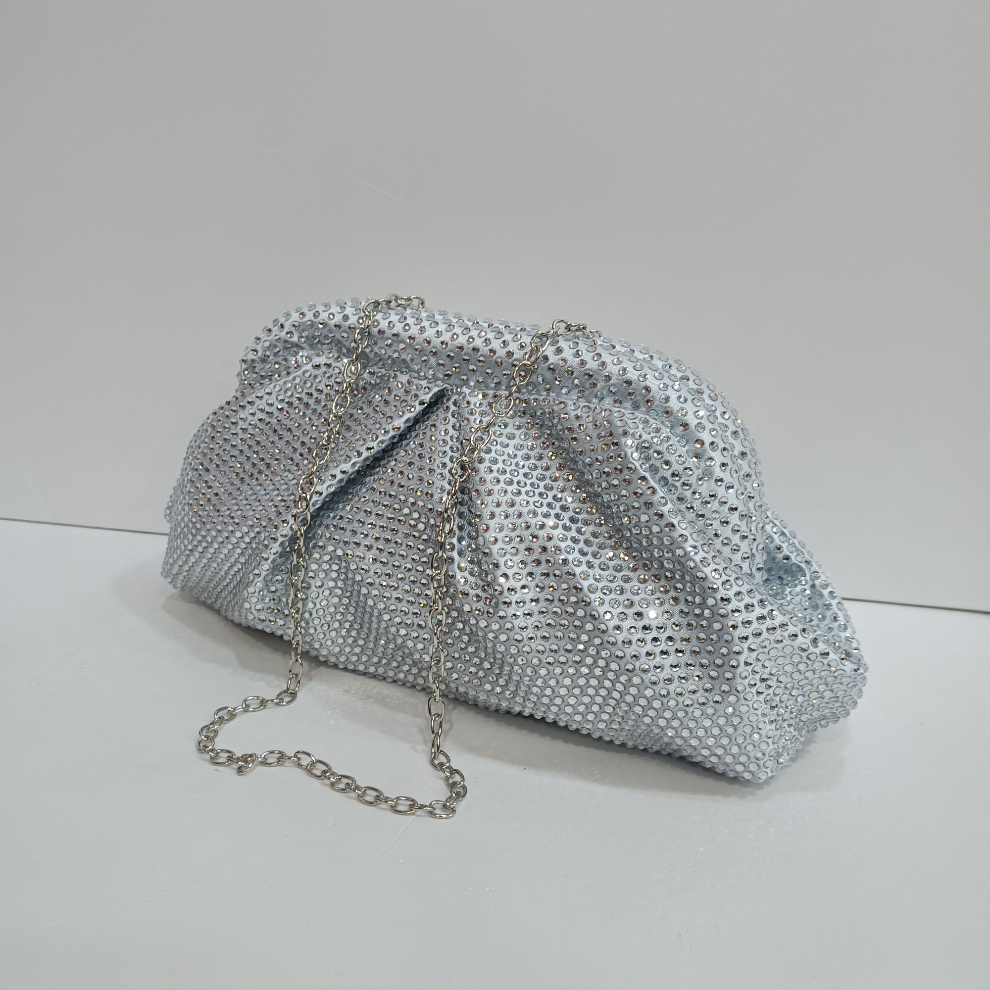 Bolso plata de mano con cadena para colgar al hombro. Bolso casual, retro y elegante, bolso bandolera de fiesta .
