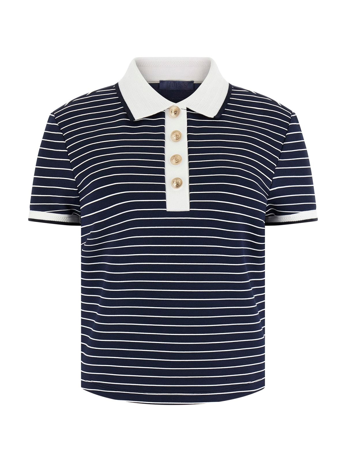 Polo Guess de mujer con estilo rayado y botones dorados.