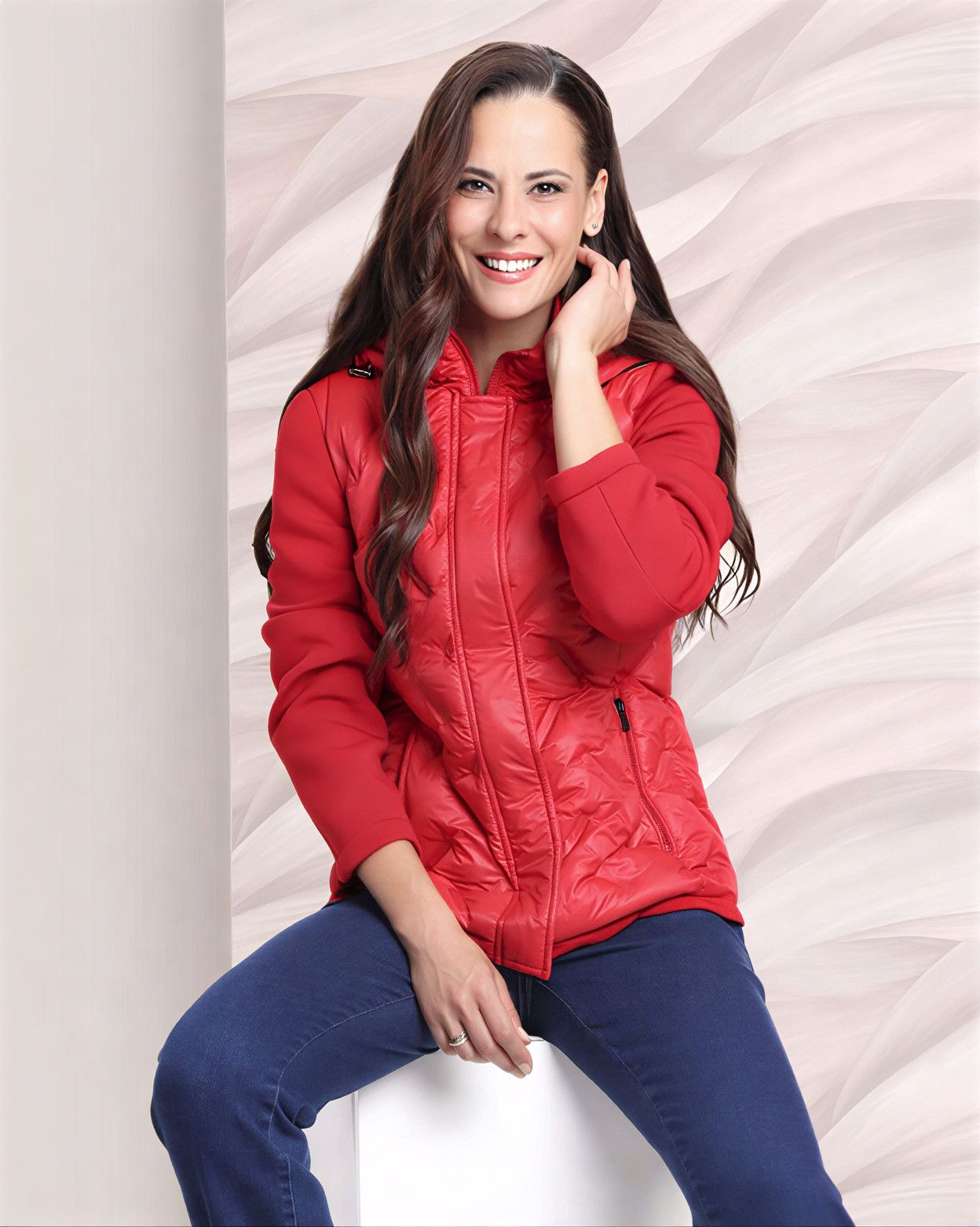 Energía y protección en una sola prenda. Esta chaqueta combina paneles frontales acolchados con mangas de tejido técnico flexible, ofreciendo una libertad de movimiento total. Su color rojo intenso y su acabado repelente al agua la convierten en la opción ideal para un estilo de vida activo y urbano.