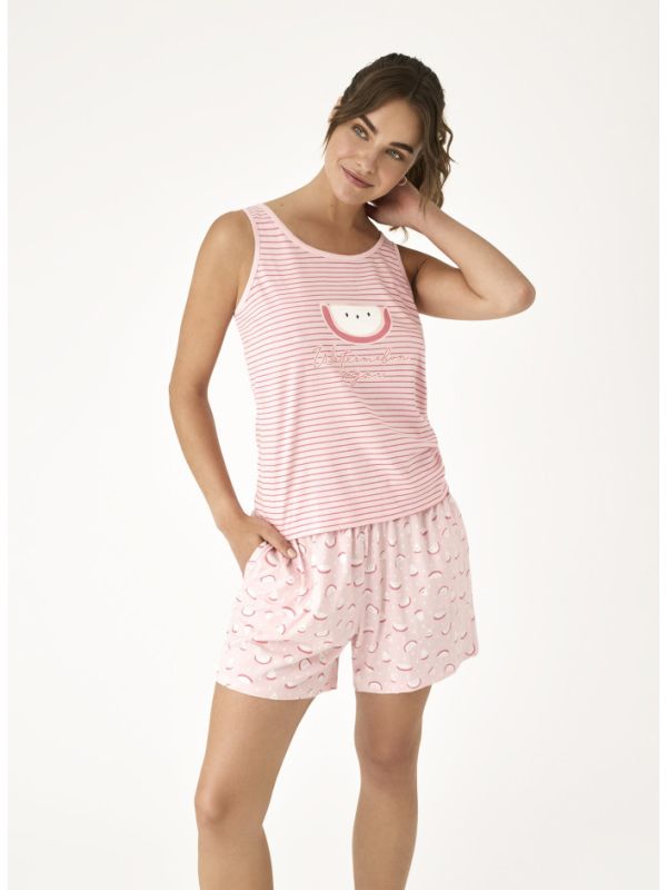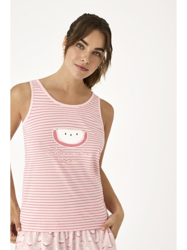¡Luce a la moda y cómoda con nuestra pijama de mujer con camiseta de tirantes con estampado de sandía! Ideal para descansar en casa o para dormir, esta pijama de la familia Pijamas es perfecta para cualquier ocasión. Fabricada con materiales de alta calidad, esta pijama te garantiza comodidad y estilo. ¡Hazte con la tuya y disfruta de un descanso perfecto!
