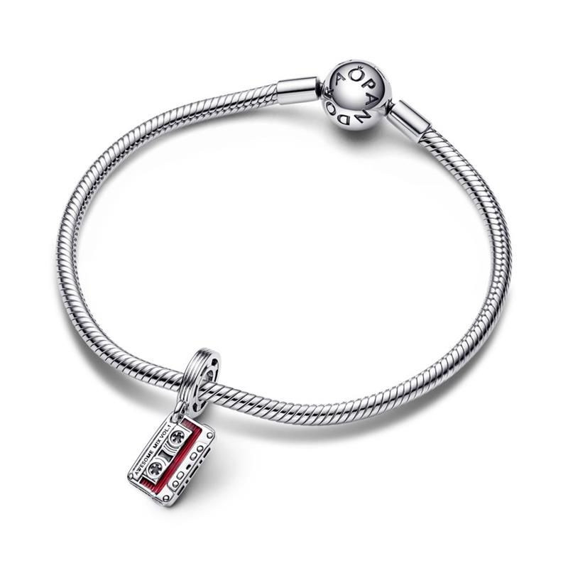 Charm Pandora de la colección Pandora x Marvel. Se trata de la cinta de cassette de la película "Guardianes de la Galaxia", fabricado en plata de primera ley, con acabados en esmalte rojo y negro. Tiene como referencia 792564C01.