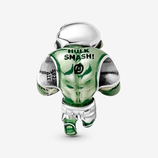 Charm Pandora Hulk de la colección Los Vengadores de Marvel fabricado en plata de primera ley. Se trata de un charm en forma del icónico personaje Hulk de Los Vengadores de Marvel acabado en esmalte verde, con referencia 790220C01.