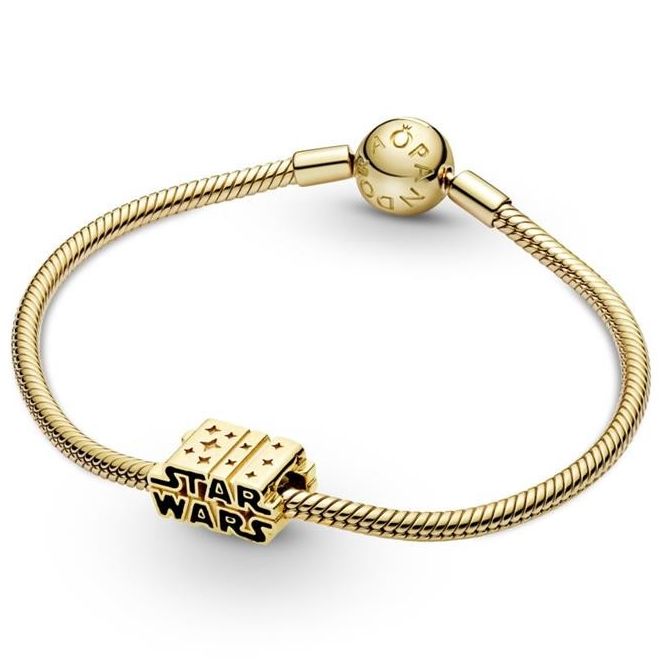 Charm Pandora Shine Logo Star Wars de la colección Disney x Pandora, fabricado en aleación de metales con baño en oro de 18k, con referencia 769247C01. Un charm ideal si eres un verdadero fan de la saga y se lo quieres enseñar a todo el mundo. ¡Que la fuerza te acompañe!