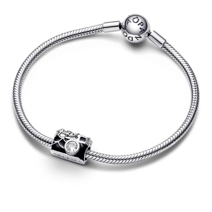 Charm Pandora Cámara Selfie Spider-Man de la colección Marvel x Pandora, fabricado en plata de primera ley en forma de cámara de fotos con esmalte negro con referencia 792352C01. Por la parte interior, tiene la figura de Spider-Man, con preciosos acabados por ambos lados.