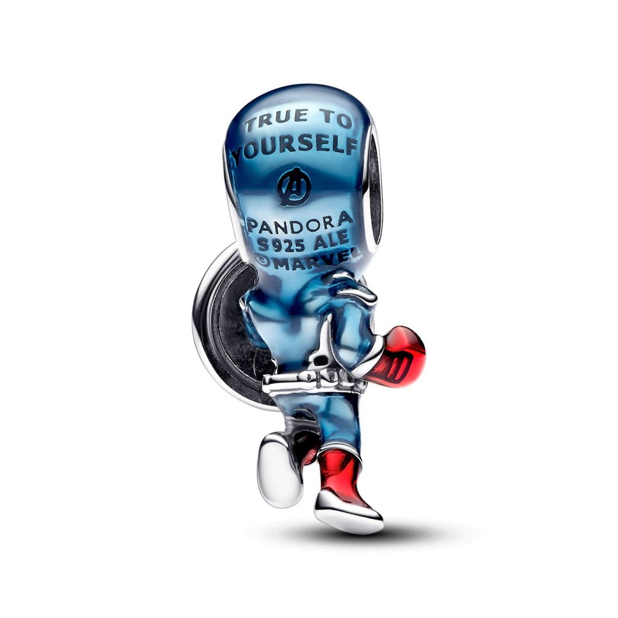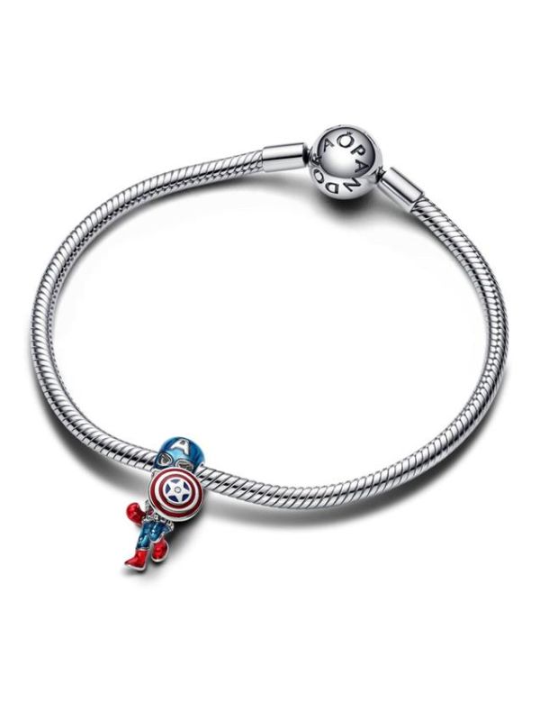 Charm Pandora Capitán América de la colección Pandora x Marvel, fabricado en plata de primera ley en esmalte multicolor en forma del emblemático personaje "CAPITÁN AMÉRICA" de Los Vengadores de Marvel. Con referencia 793129C01.