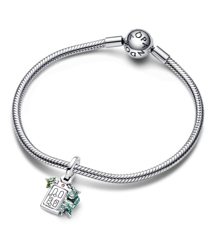 Charm Colgante de Pandora, de la colección Pandora x Disney. Se trata de un precioso charm de la famosa puerta de Monstruos S.A, con Sulley y Mike Wazowski a ambos lados de esta. Fabricado en plata de mi primera ley y con referencia 792758C01.
