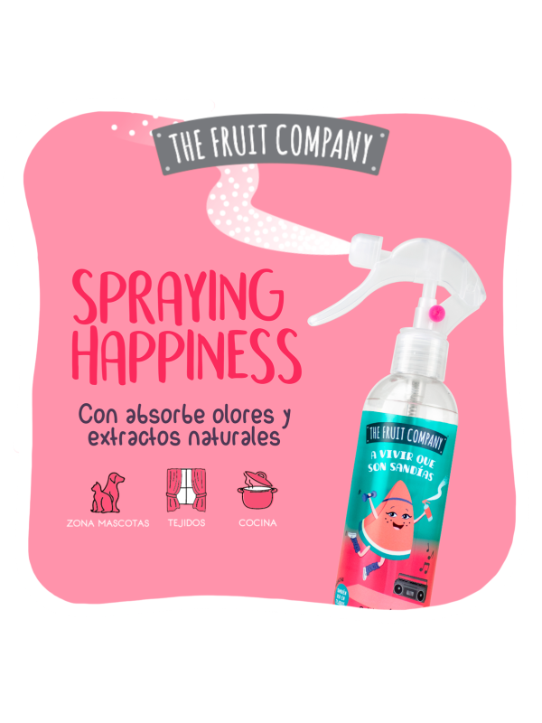 Spray Ambientador de 250 ml con exótico aroma a Sandía y formulado con extractos naturales. Apto para tejidos, absorbe olores y... ¡No mancha!