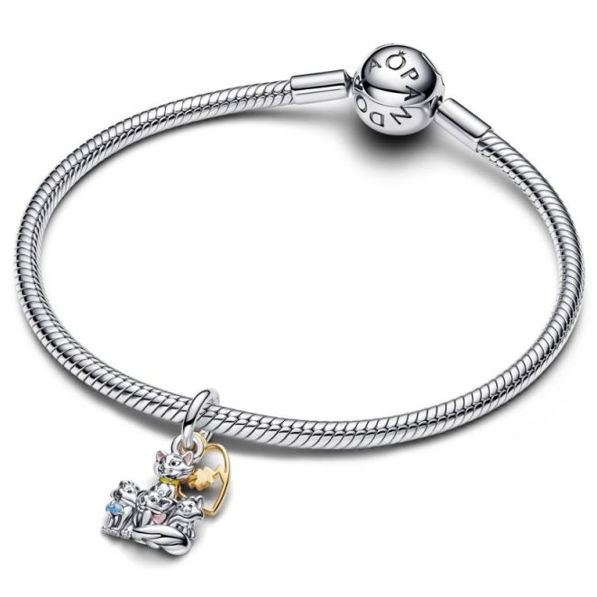Charm Pandora Duquesa y Gatitos de los Aristogatos de la colección Disney x Pandora, fabricado en plata de ley y aleación de metales bañados en oro amarillo de 14kt y con esmalte multicolor. ¡Perfecto para regalar a la persona que más quieres!