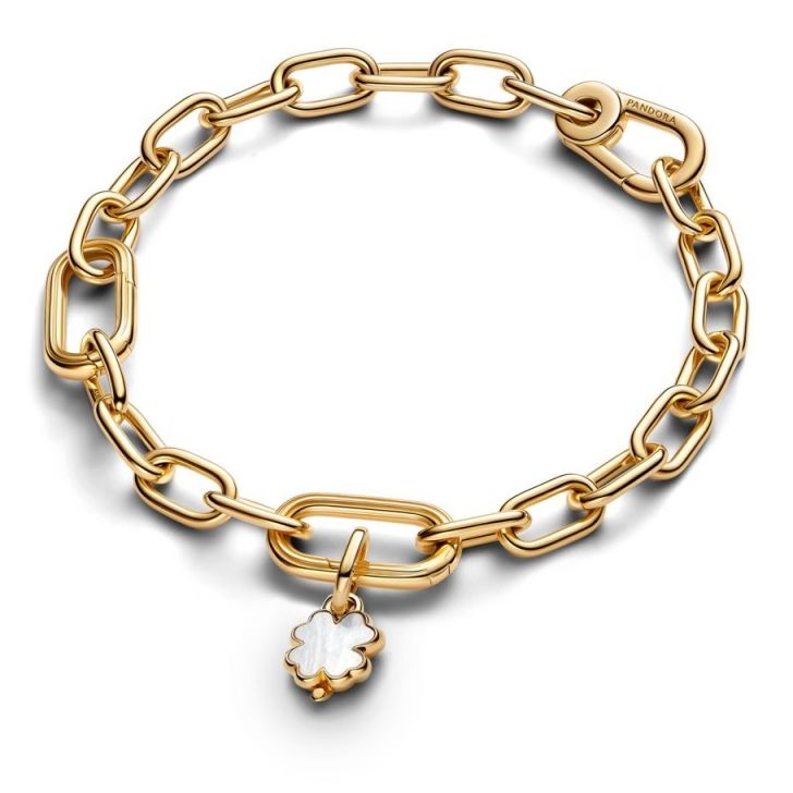 Charm Colgante Pandora Trébol Blanco de la Suerte de la colección 'Día de la Madre 2026', fabricado en aleación de metales bañados en oro amarillo, con forma de trébol compuesto en biorresina.