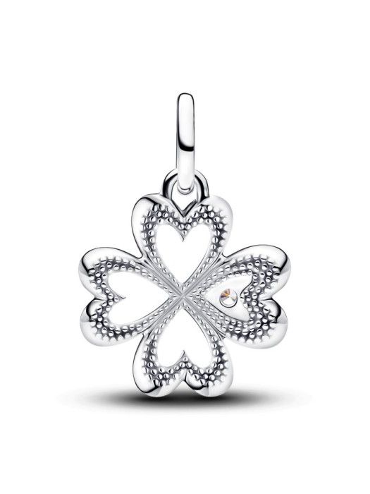 Charm Pandora Medallón Trébol 4 Hojas en forma de Corazón de la colección 'Día de la Madre 2026', fabricado en plata y compuesto por hojas en forma de corazón. ¡Perfecto para regalar a la persona que más quieres!