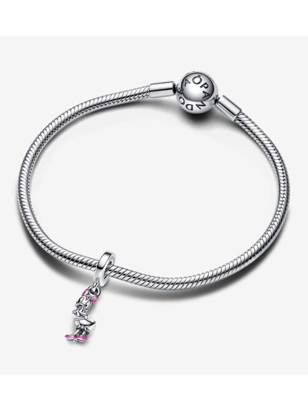 Charm Colgante Pandora Daisy, fabricado en plata de primera ley, de la colección Disney x Pandora. Adornado con esmalte lavanda, negro y rosa brillante.