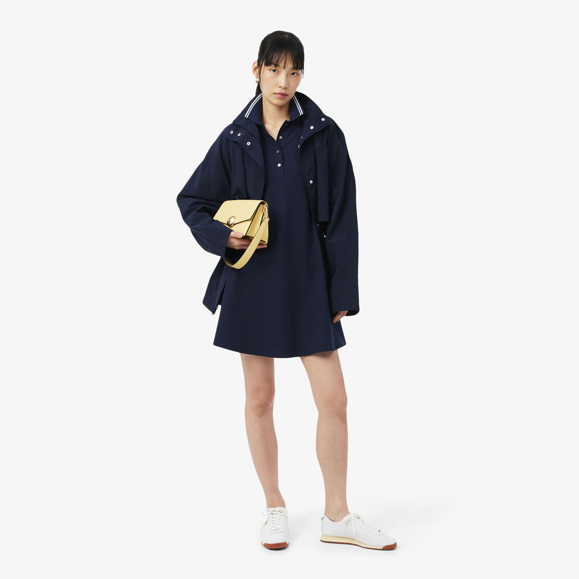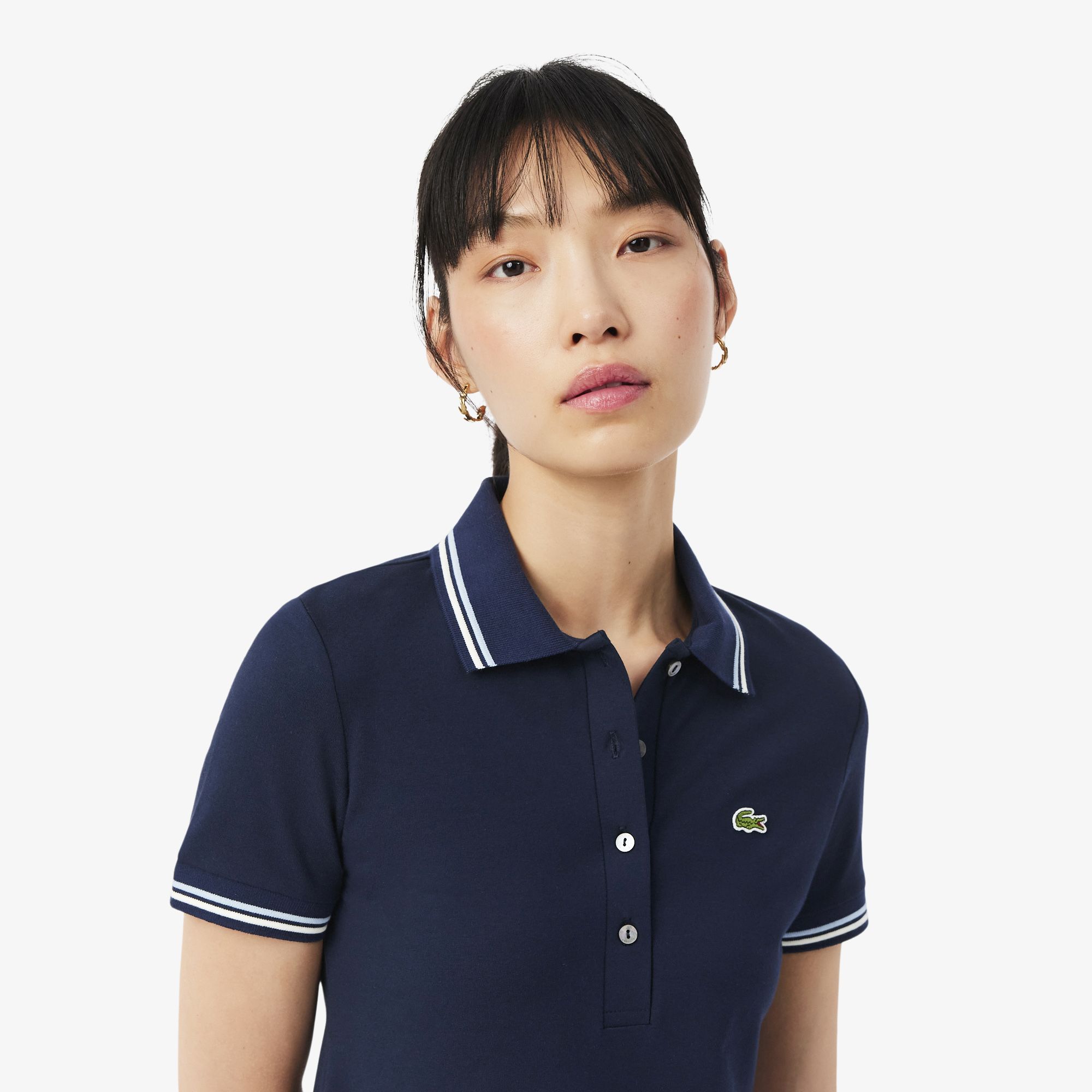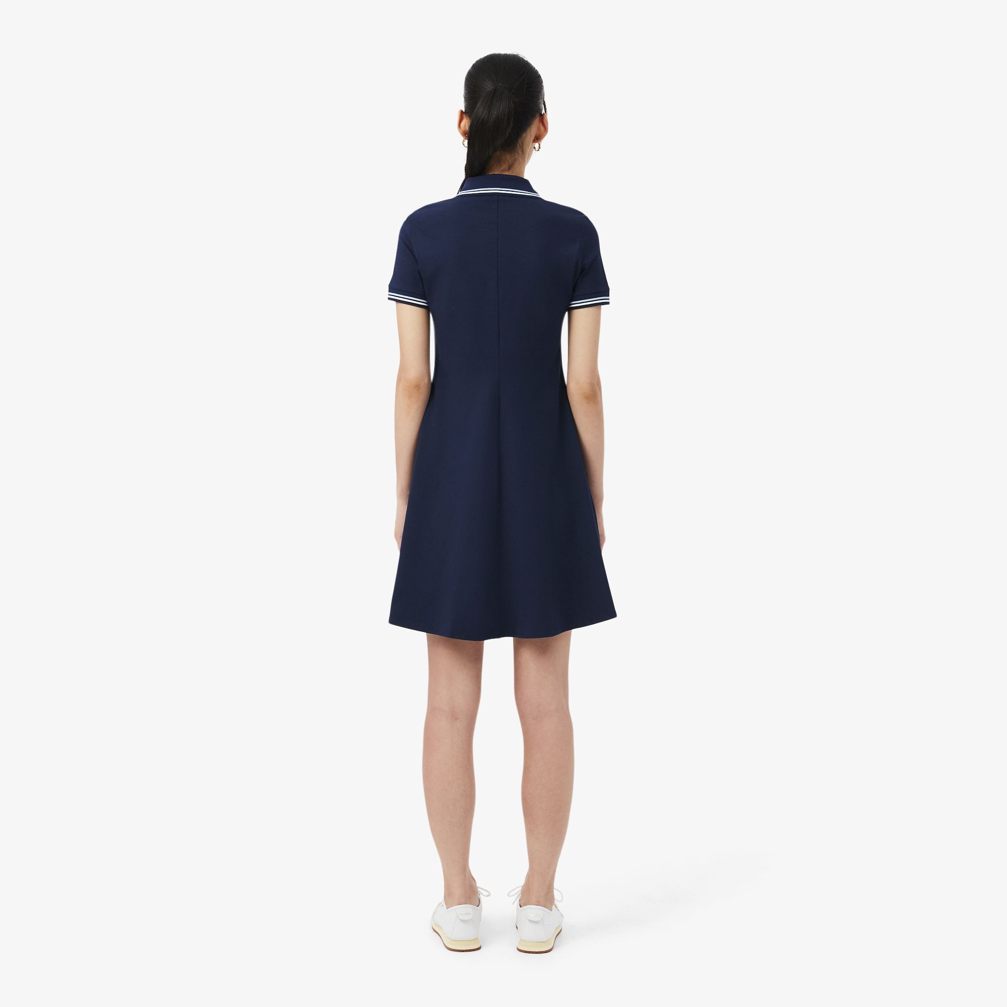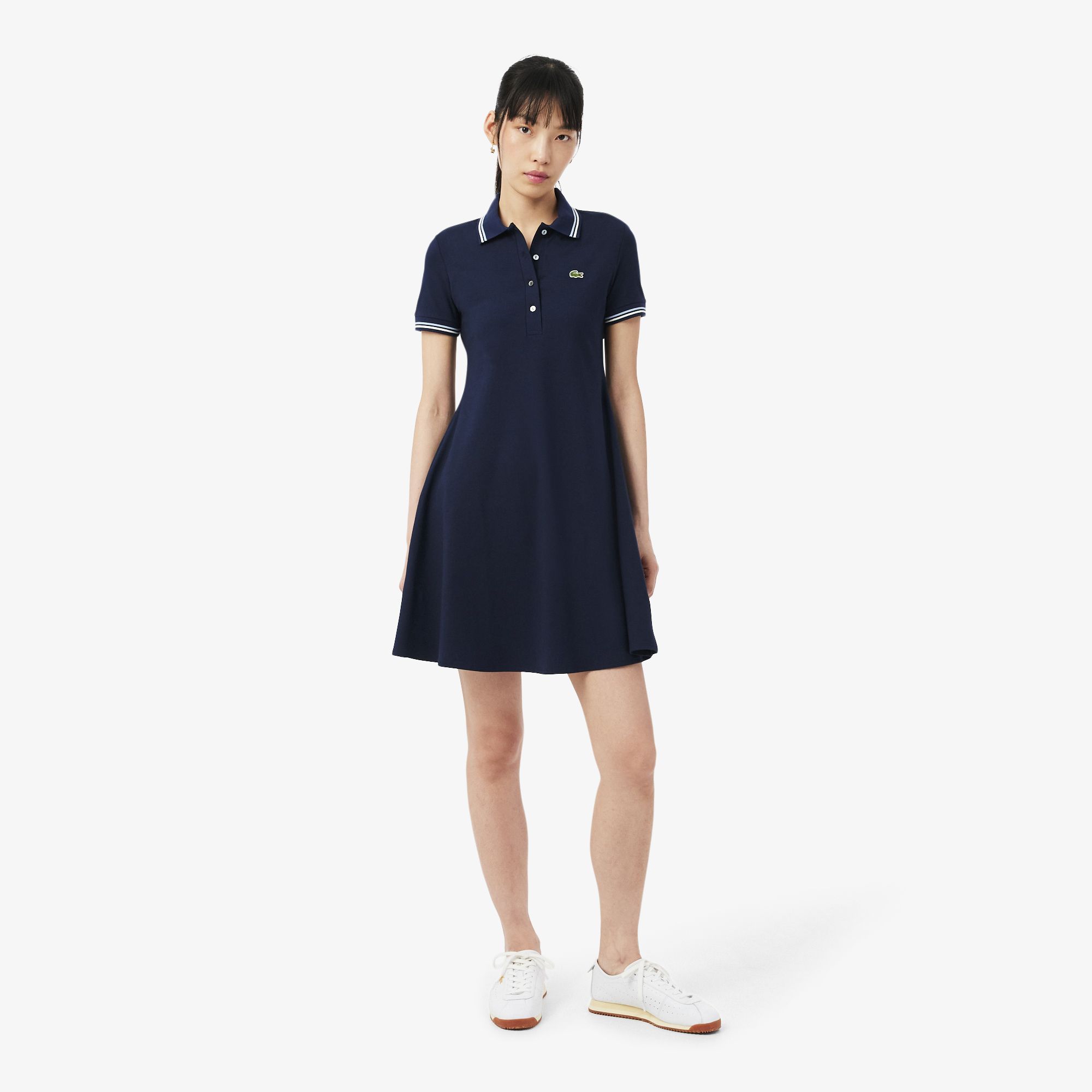 Este vestido de Lacoste, expertos en elegancia francesa desde 1933, presenta un mundo de detalles exclusivos. Se ha confeccionado en punto jersey elástico para ofrecer confort y libertad de movimiento, con detalles exclusivos como un cuello polo con ribete en contraste. Un estilo elegante y femenino que se completa con un cocodrilo bordado.