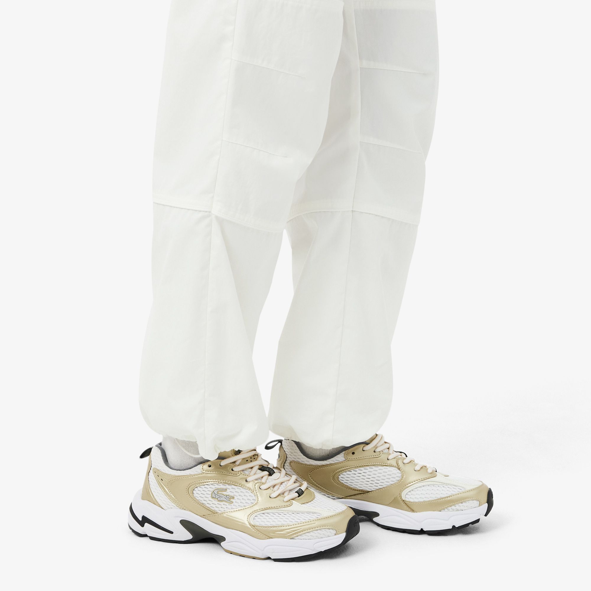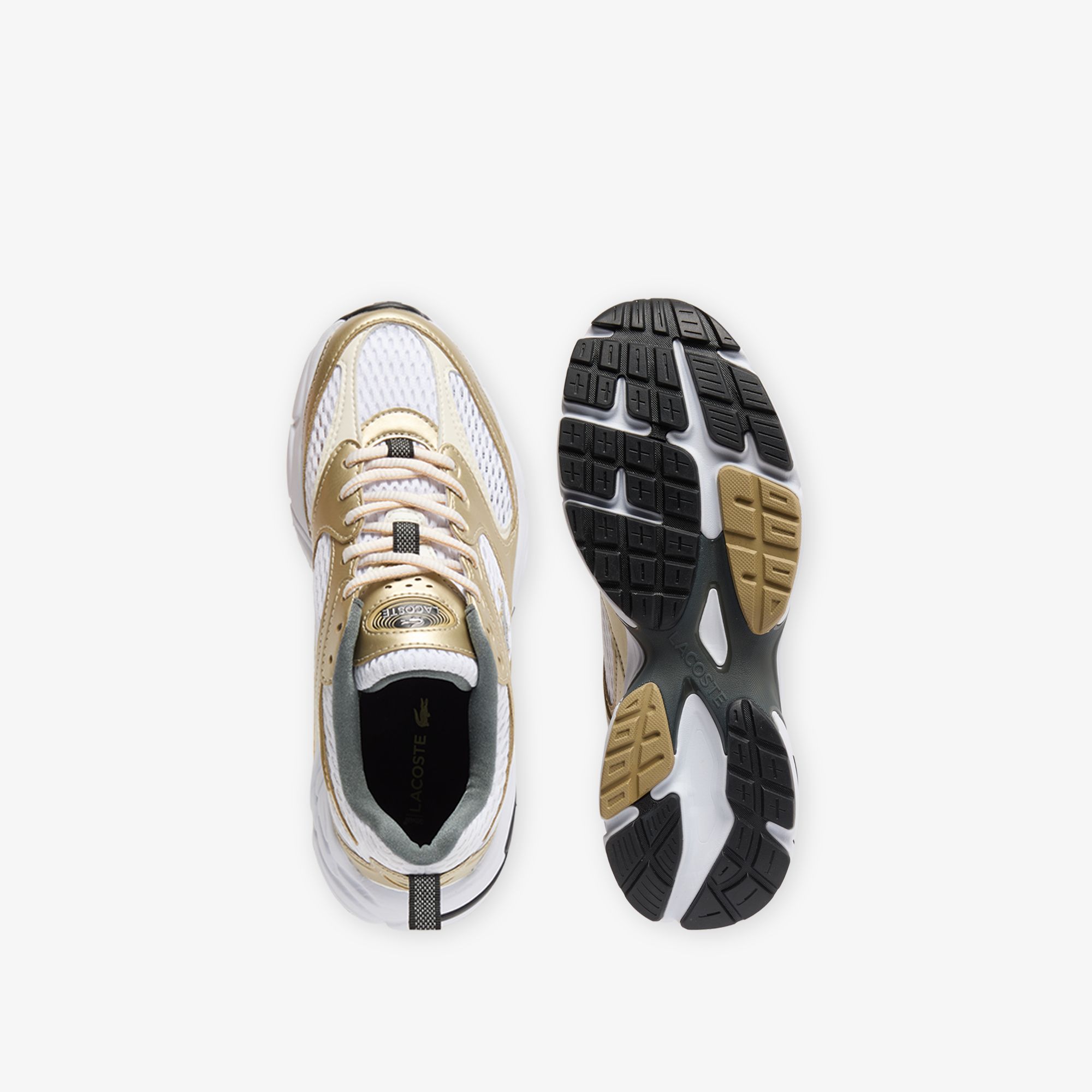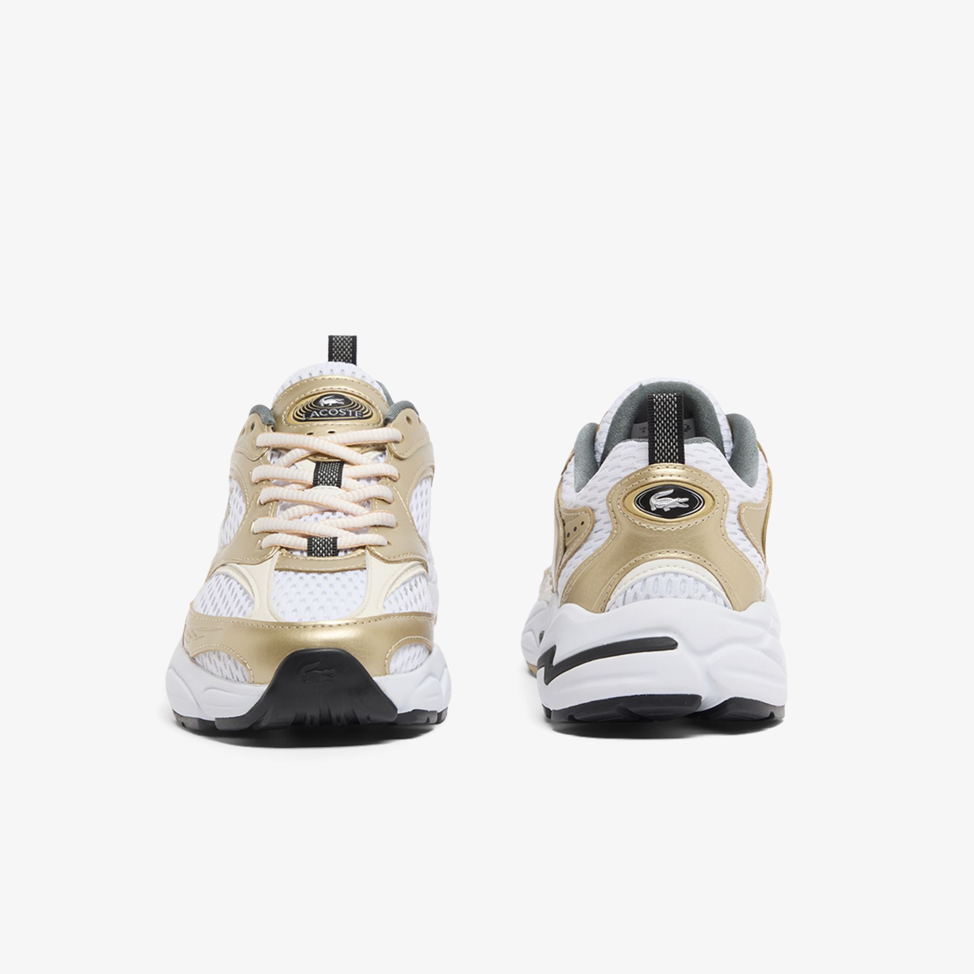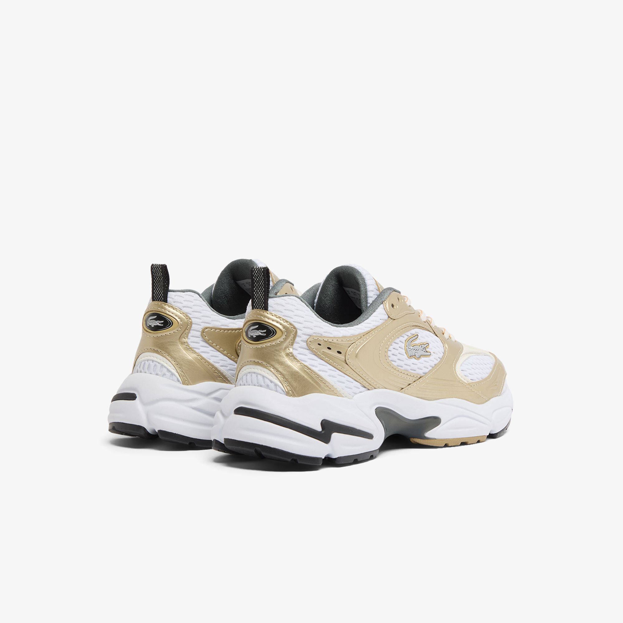 Una versión nueva y más audaz de las Storm 96 2K, inspirada en los modelos de running de los 2000 y en los primeros diseños de zapatillas para correr de Lacoste. Combinan una parte superior de malla transpirable con paneles metálicos en tono dorado que imprimen un gran dinamismo. Un modelo atrevido con múltiples detalles de marca y toques reflectantes.