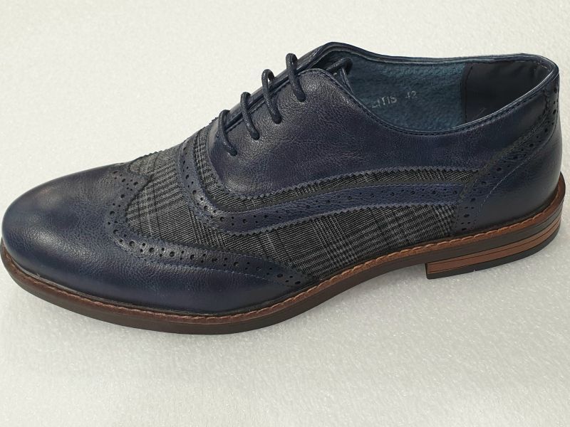 Zapato azul marino combinado con cuadros príncipe de Gales gris.
