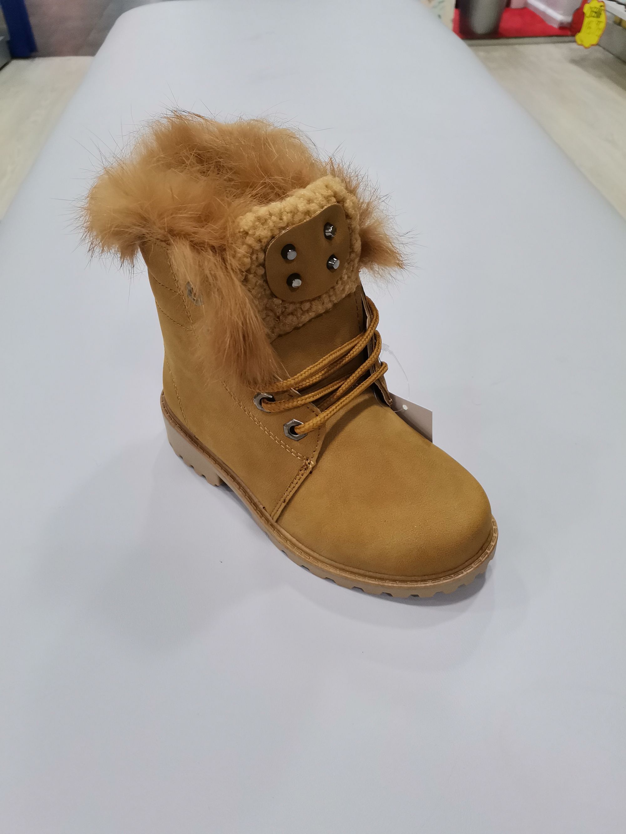Bota Panama , con detalle de tachuelas en lengueta y pelo, cordones y cremallera lateral.