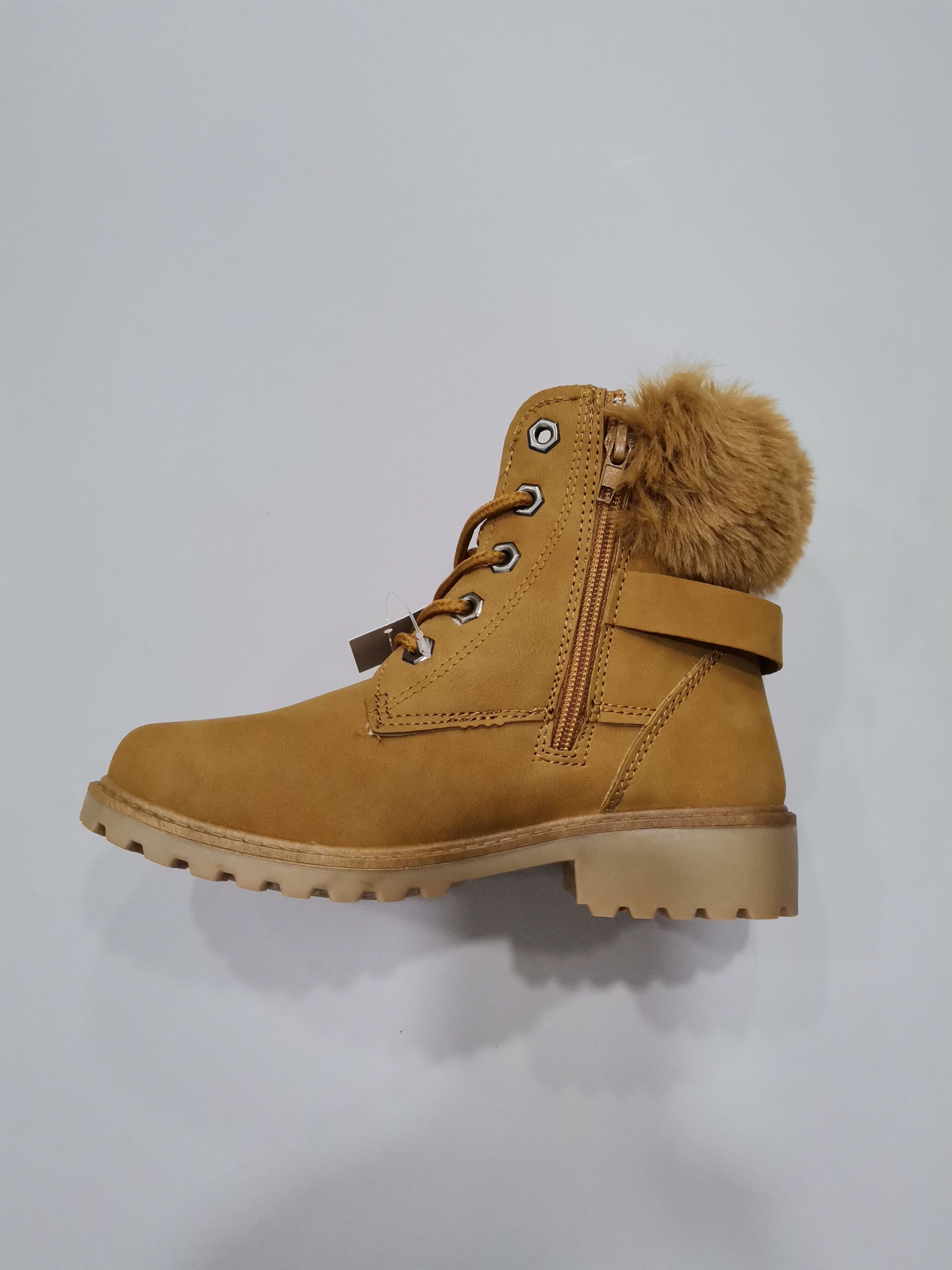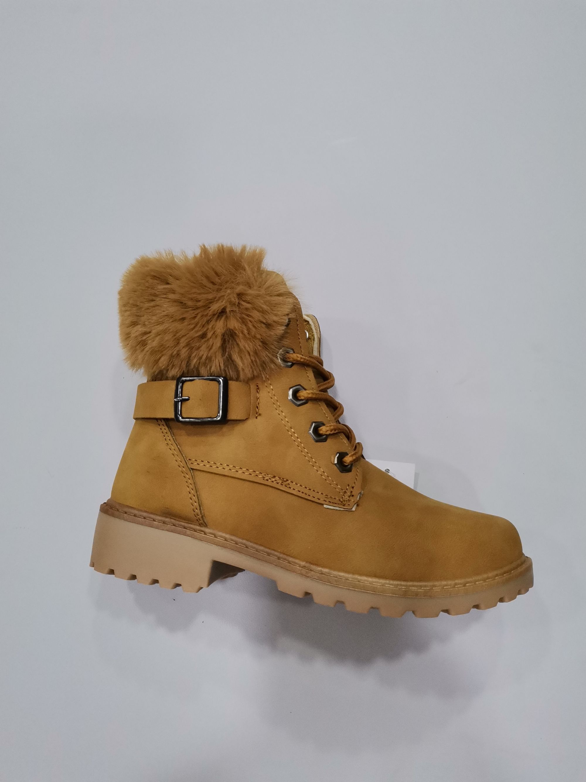 Bota Panama, cuello con pelo, detalle trasera con hebilla, cordones y cremallera, piso goma