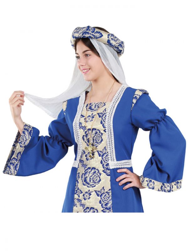 El disfraz de Princesa Medieval contiene vestido medieval y tocado.