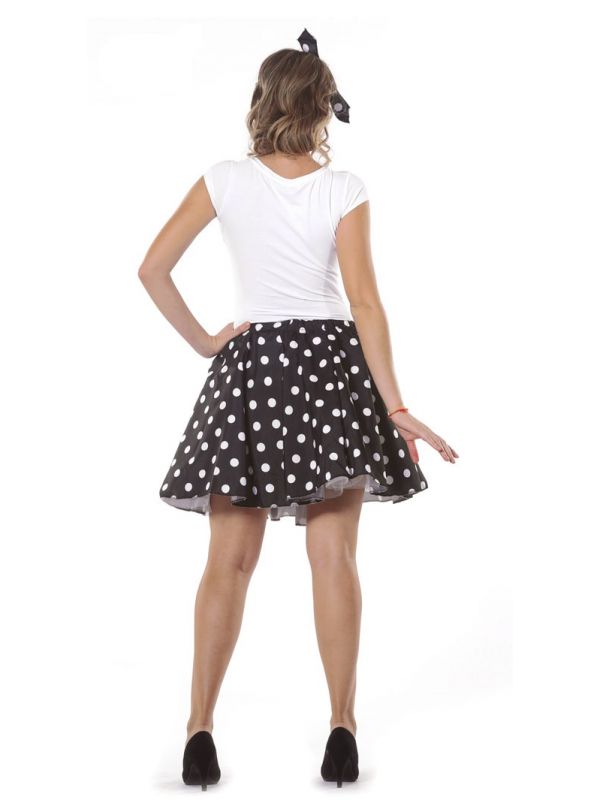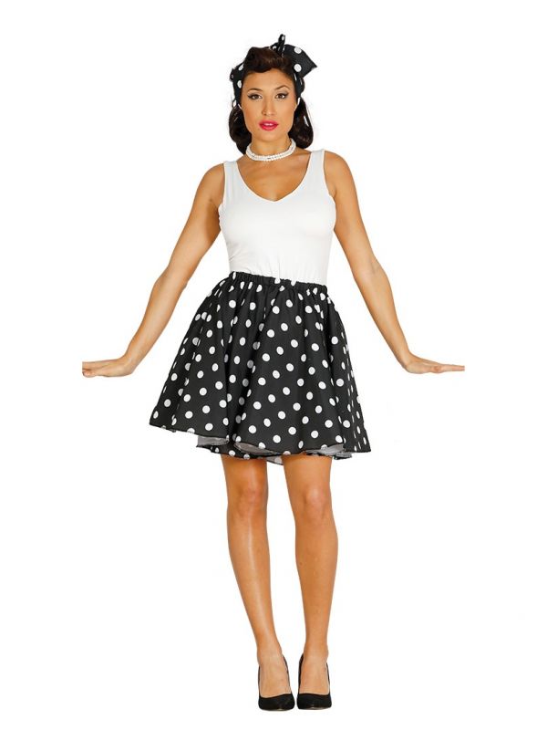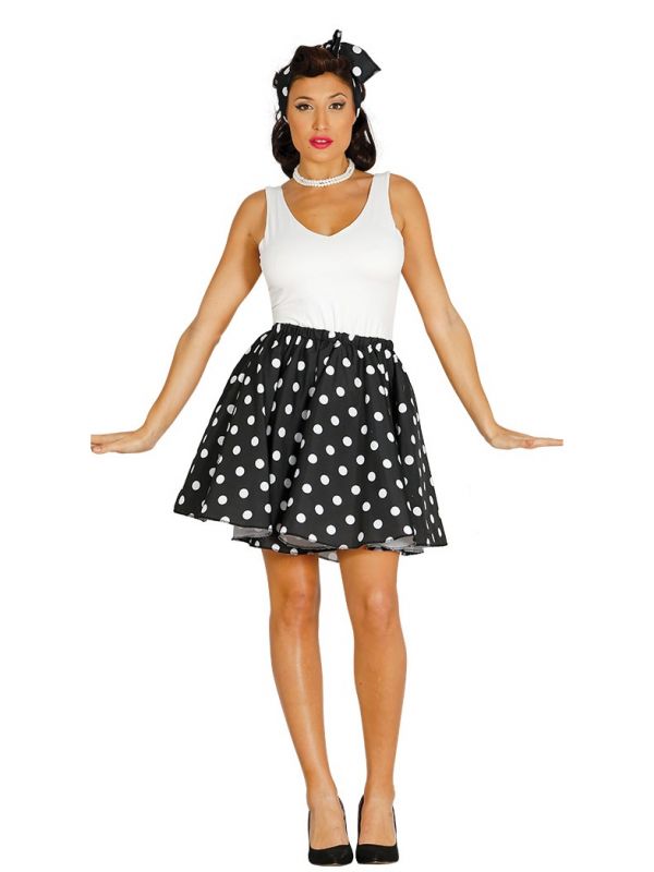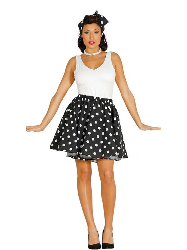 El disfraz de Pin-up negro contiene falda de topos y pañuelo