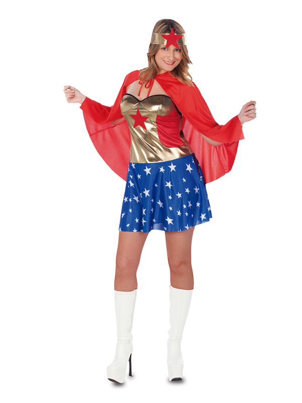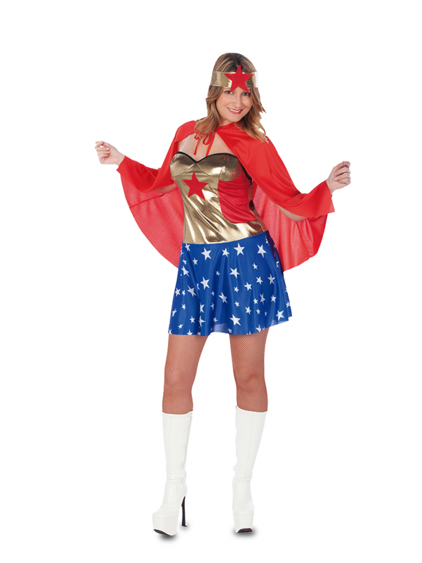 El disfraz de Superwoman contiene tocado, vestido y capa