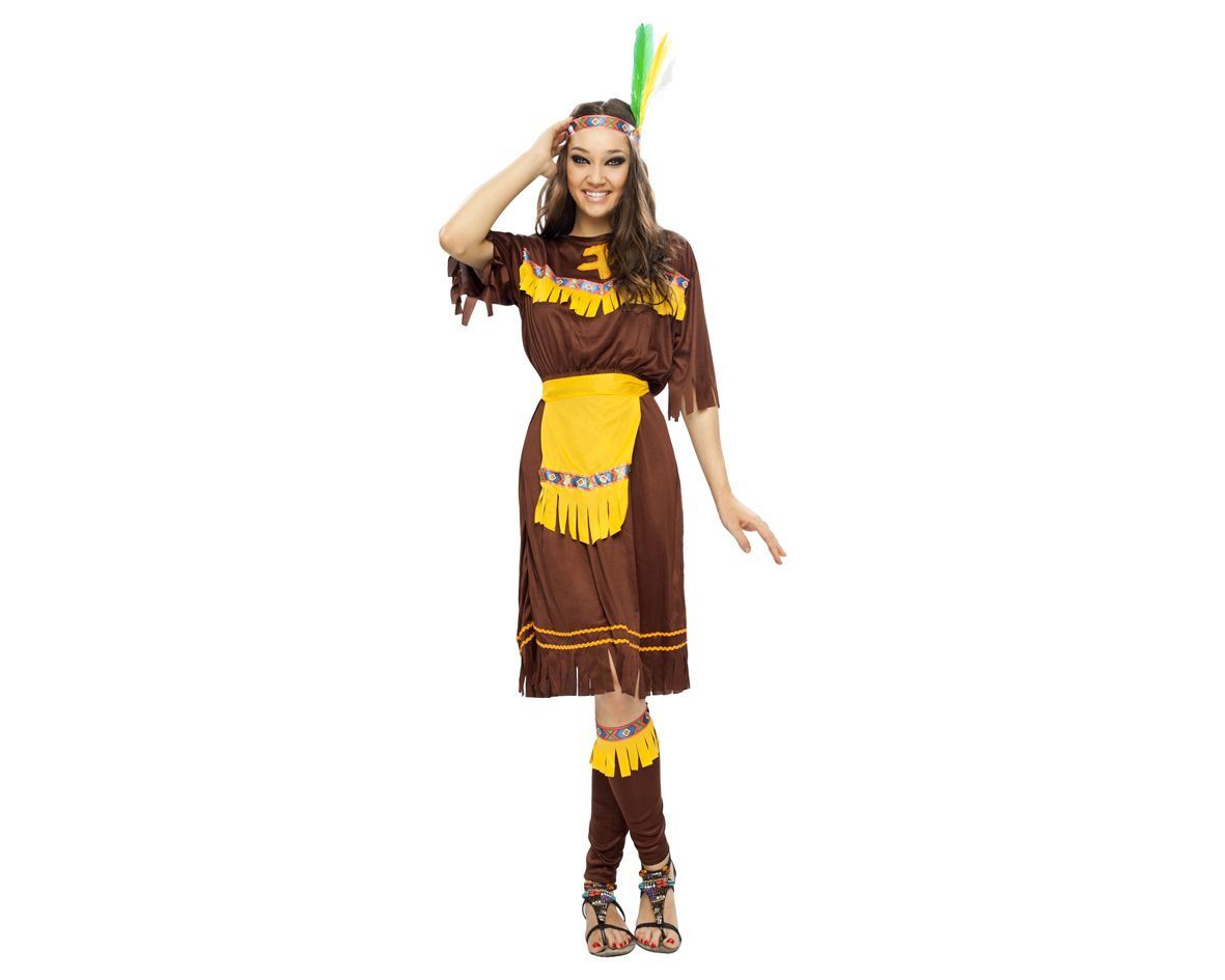 Revive la cultura india, con este disfraz de india marron, un disfraz comodo y sencillo para disfrazarte en carnaval, haz un poblado indio disfrazante en grupo.