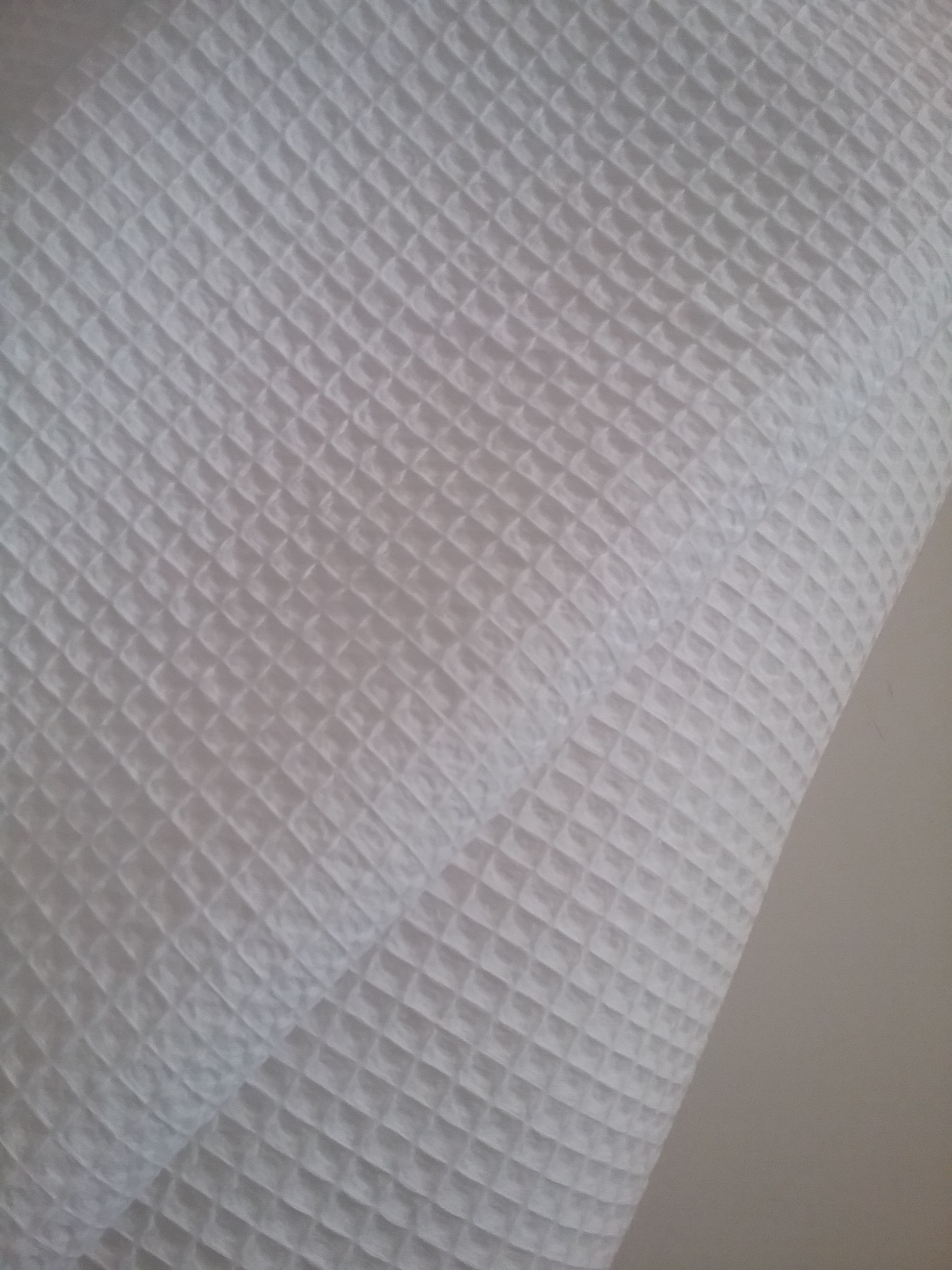 Waffle o gofre, es un tejido llamado así por sus cuadraditos en relieve haciendo forma de nido de abaja,es esponjosa con un tacto suave, manejable y cómoda muy útil para prendas de bebé, sacos,arruyos etc...igualmente para decoración de hogar como cojines ,colchas, cortinas...