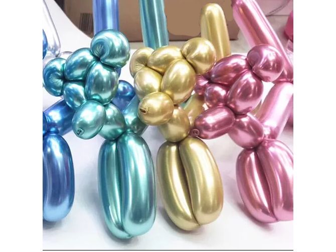 Bolsa de globos de modelar color oro metalizado, un globo de latex brillante de gran calidad para decorar tus fiestas de cumpleaños, ideal para hacer formas y decoraciones originales.
