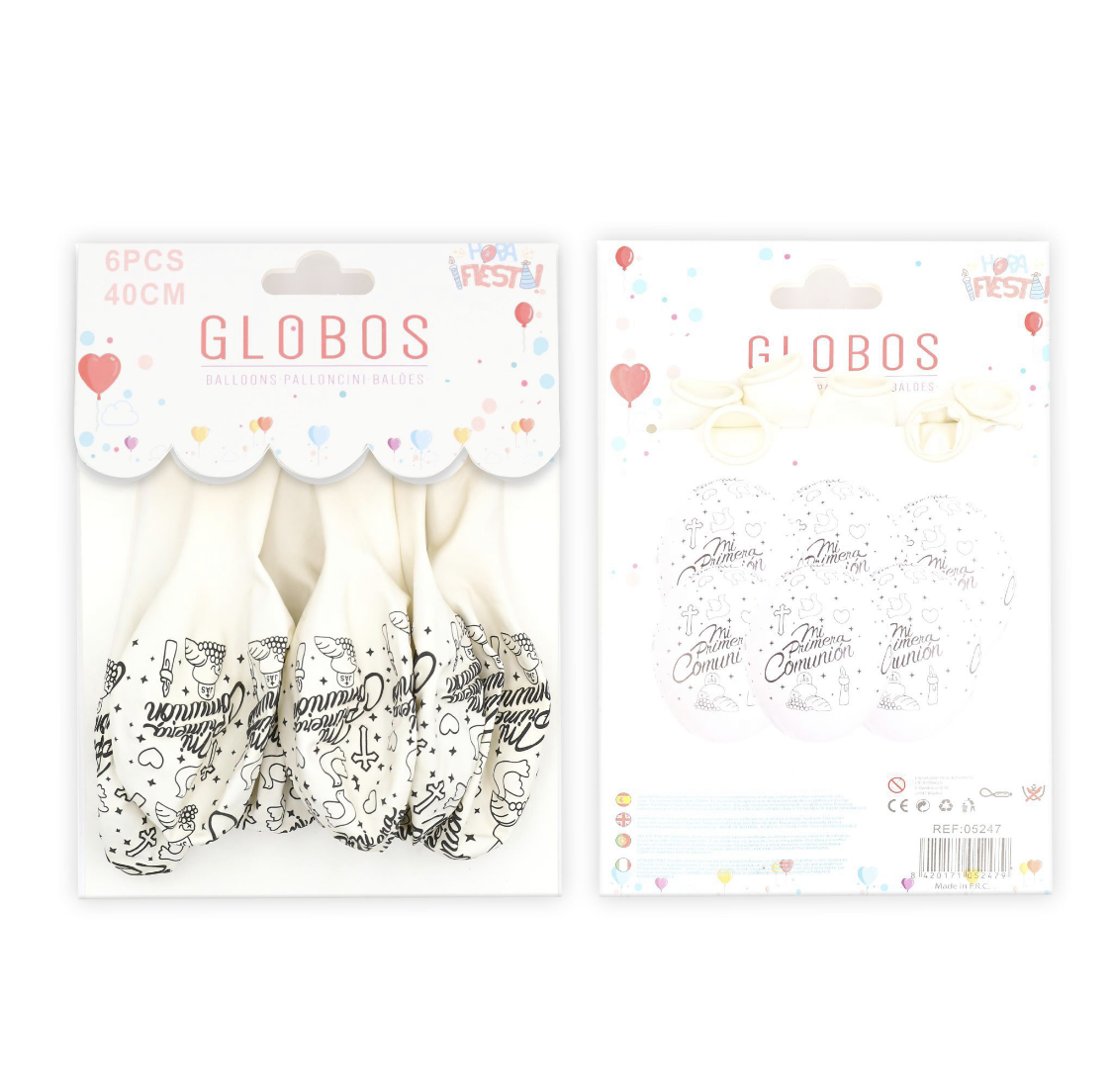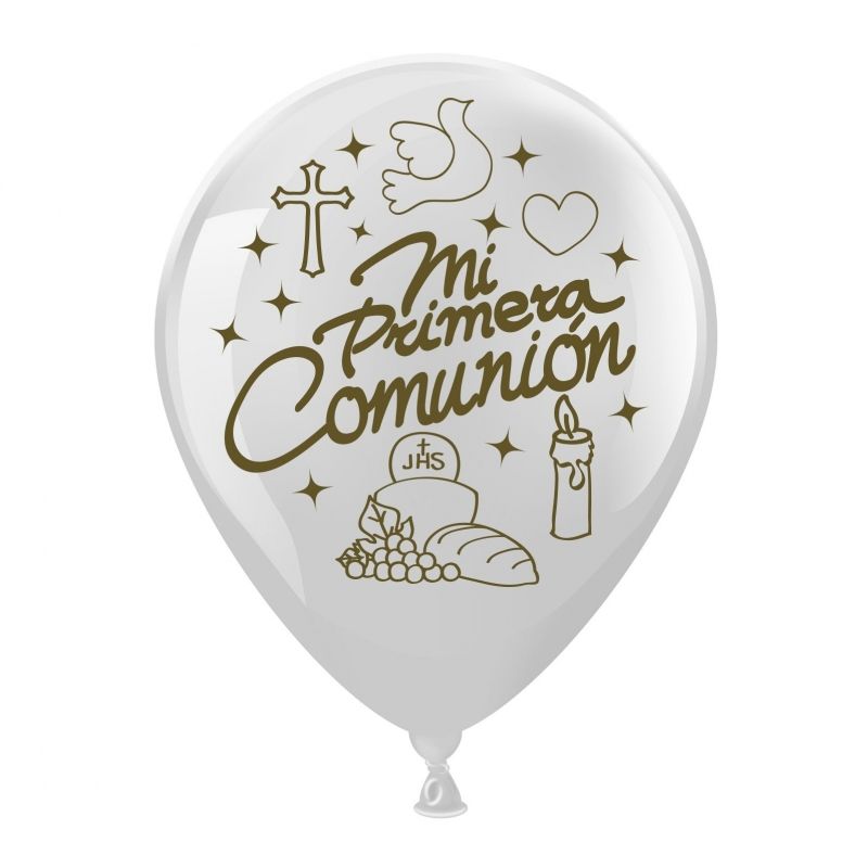 Los globos de mi primera comunión contiene 6 globos blancos impresos con Mi primera comunión.