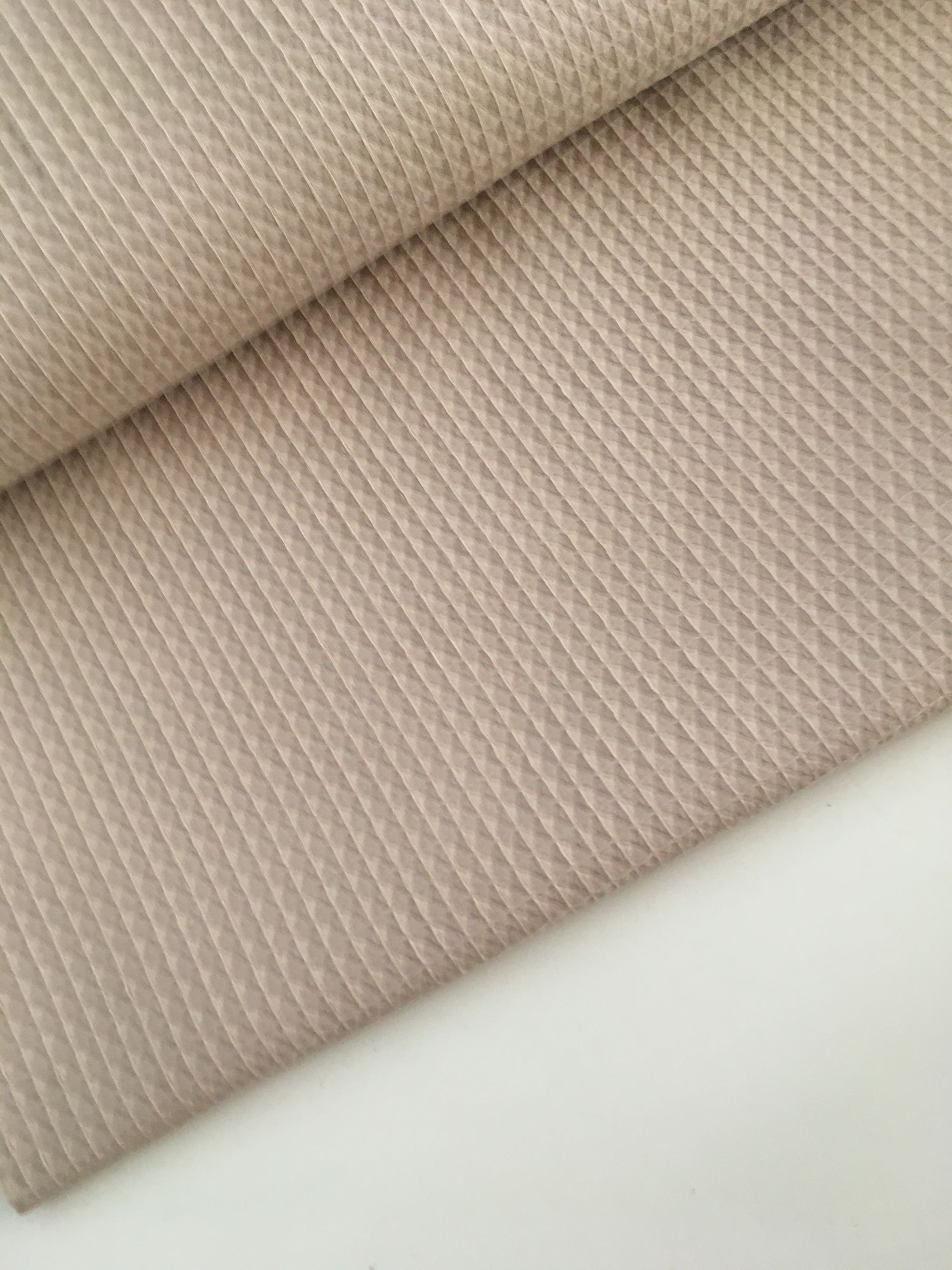 Waffle o gofre, es un tejido llamado así por sus cuadraditos en relieve haciendo forma de nido de abaja,es esponjosa con un tacto suave, manejable y cómoda muy útil para hacer prendas de bebé, sacos,arruyos etc.
