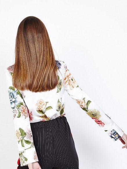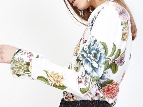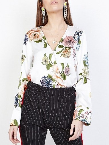 Body con estampado de flores, cruzado en la parte delantera y manga larga.
