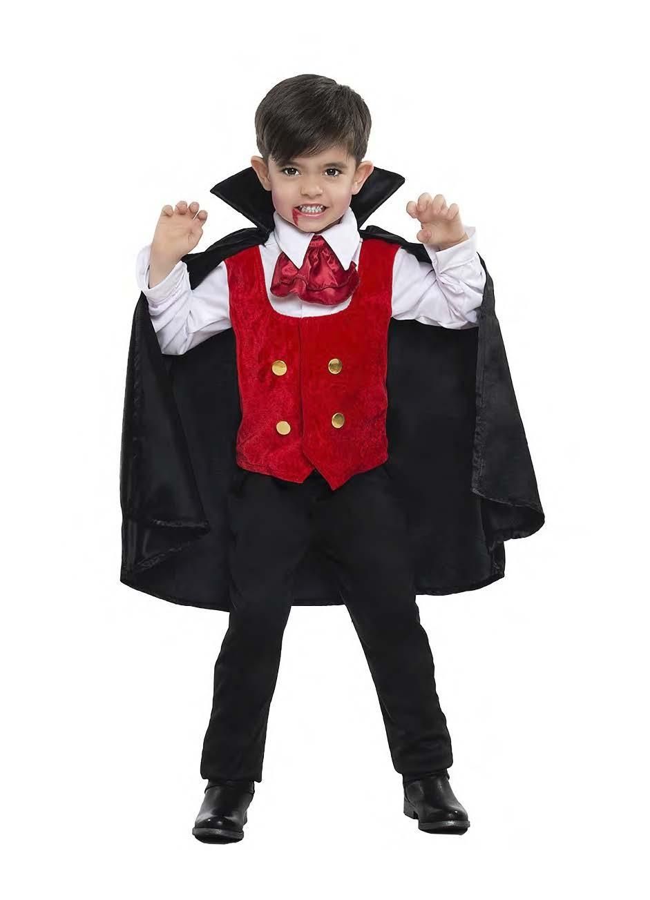 Disfraz a los niños para celebrar Halloween en casa, con este disfraz de vampiro elegante para niño, un disfraz cómodo y elegante para disfrutar del día de halloween.