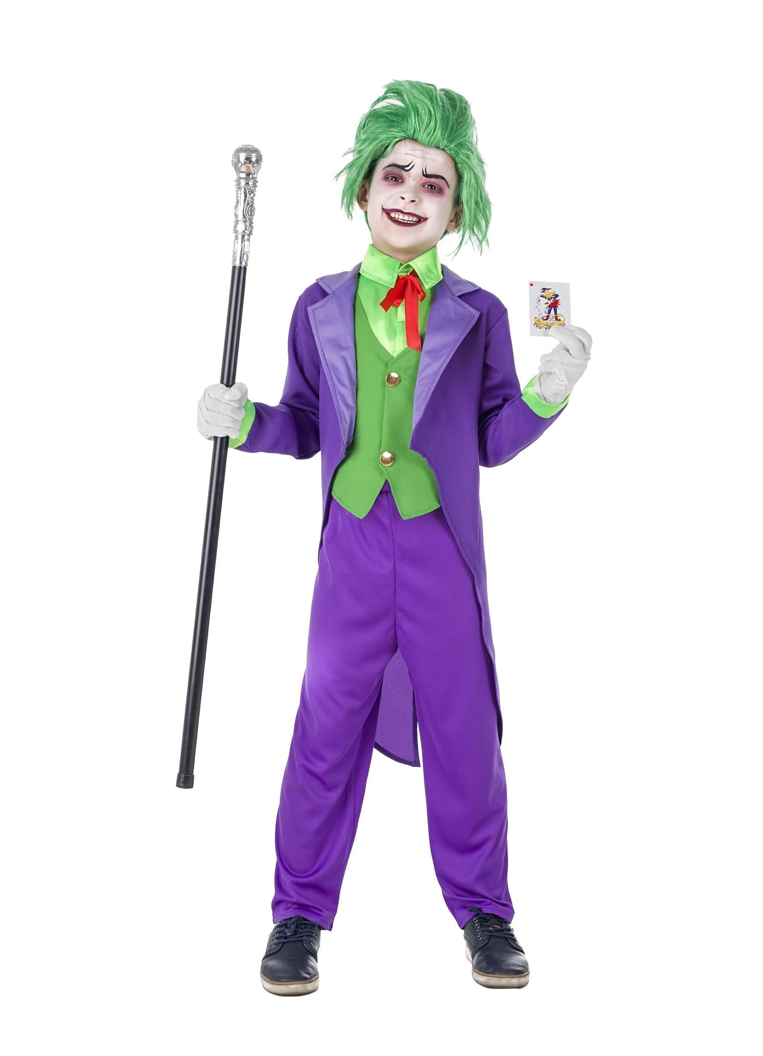 Disfraza a los niños con este original disfraz de joker infantil, un disfraz elegante y original para disfrutar del día de halloween, es hora de disfrutar de la fiesta de halloween en casa.